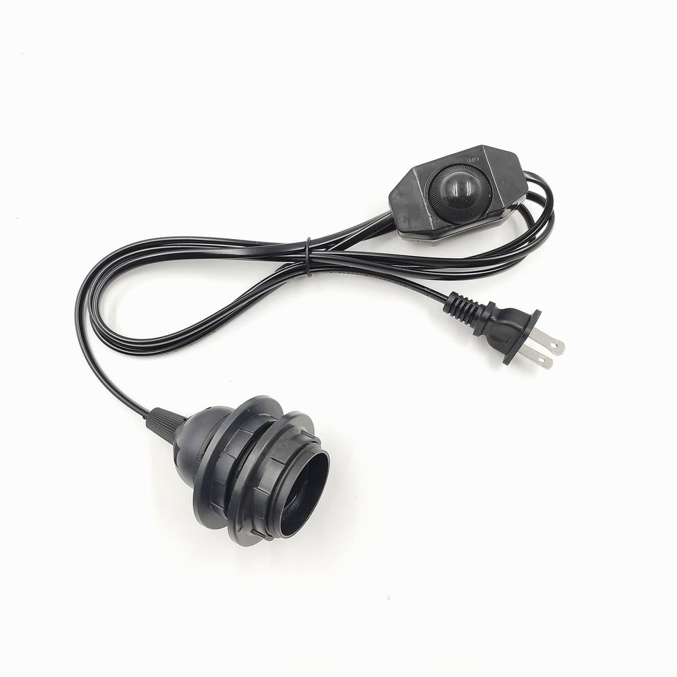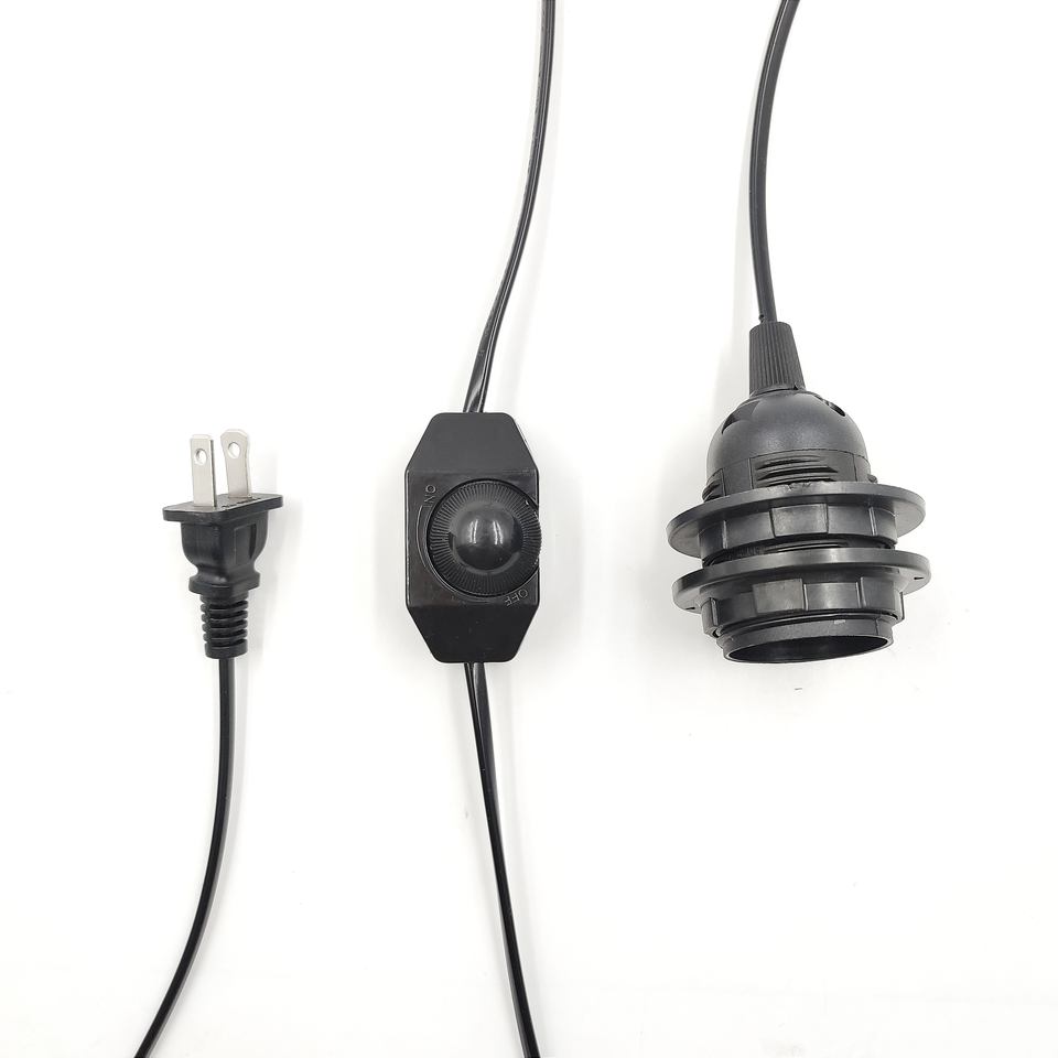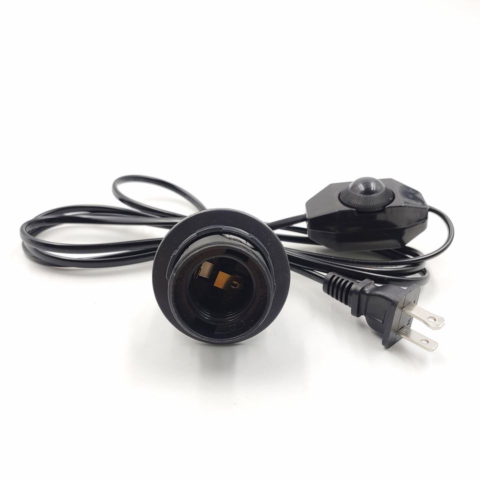 Portalampada E27 Nero con Interruttore On/Off, Dimmerabile, Cavo 1.8M, AC 110-220V, Attacco a Vite