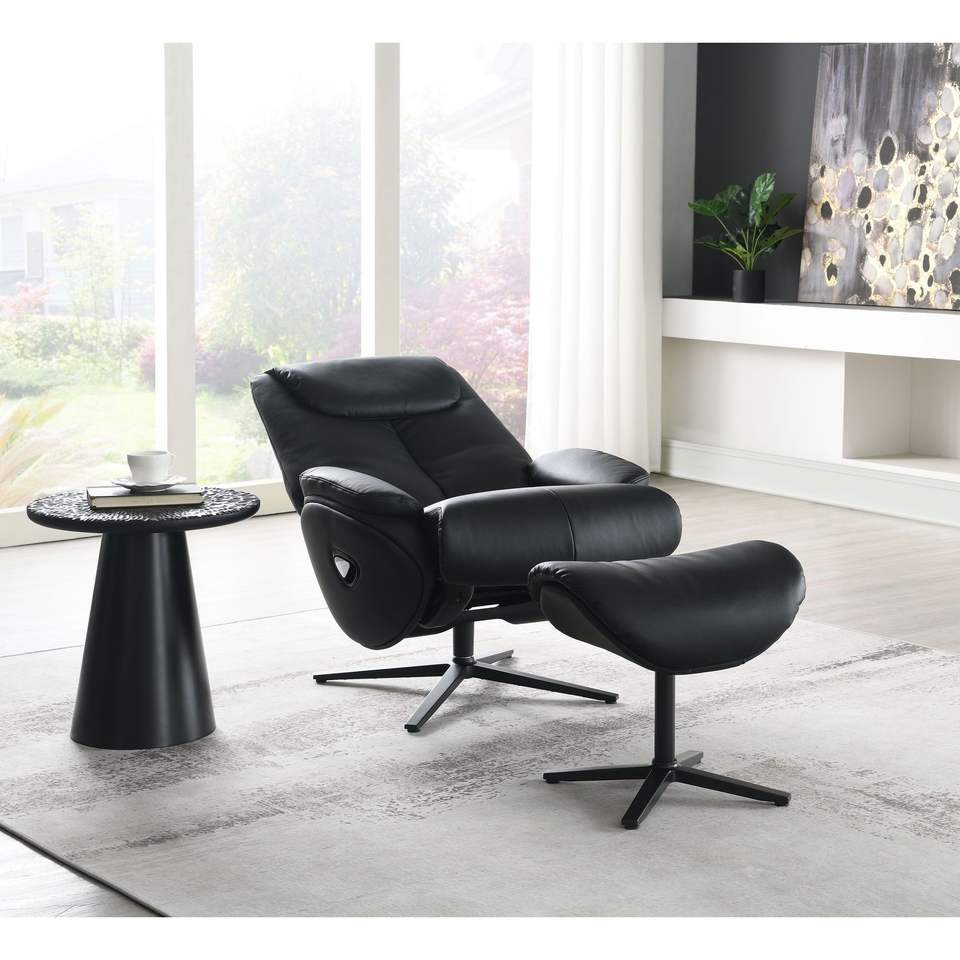Poltrona Girevole Nera con Poggiapiedi, Comoda Poltrona Reclinabile con Base Girevole e Poggiapiedi