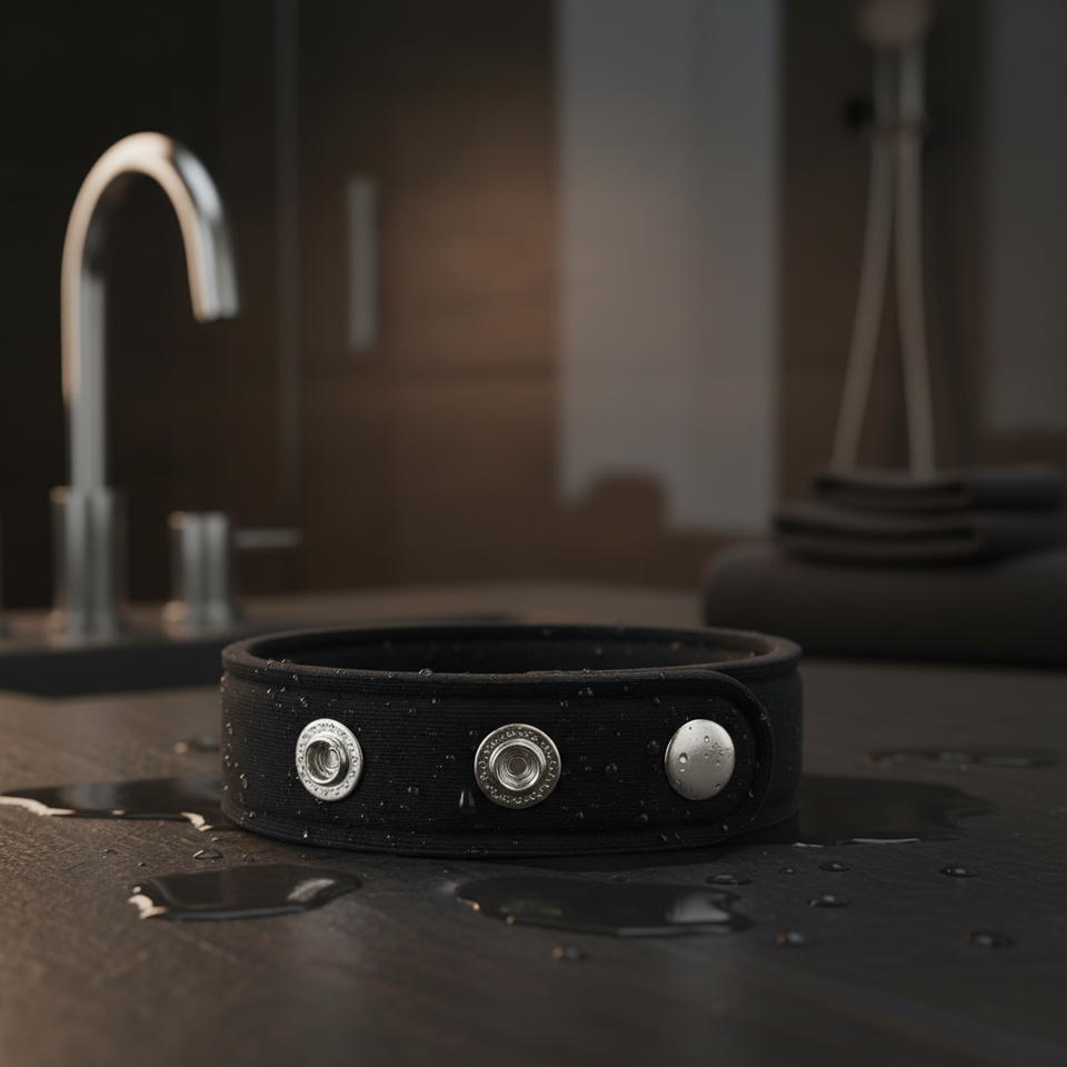 Black Neoprene Snap Cock Ring For Men Premium Penis Ring Water Resistant