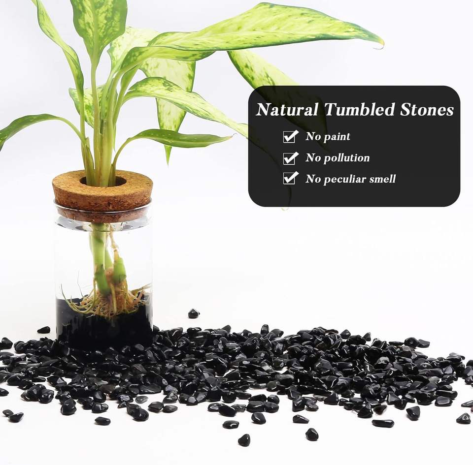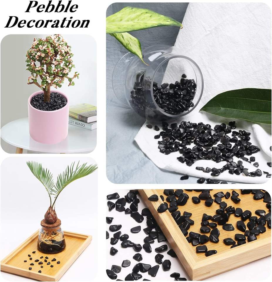 Ciottoli decorativi in pietra di ossidiana nera con trucioli di pietra di cristallo naturale 0.9 Lb/405g per la decorazione della casa