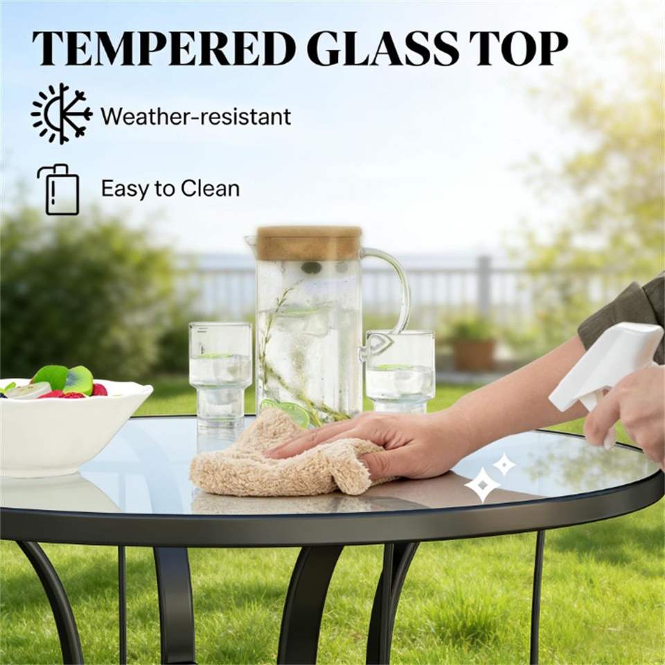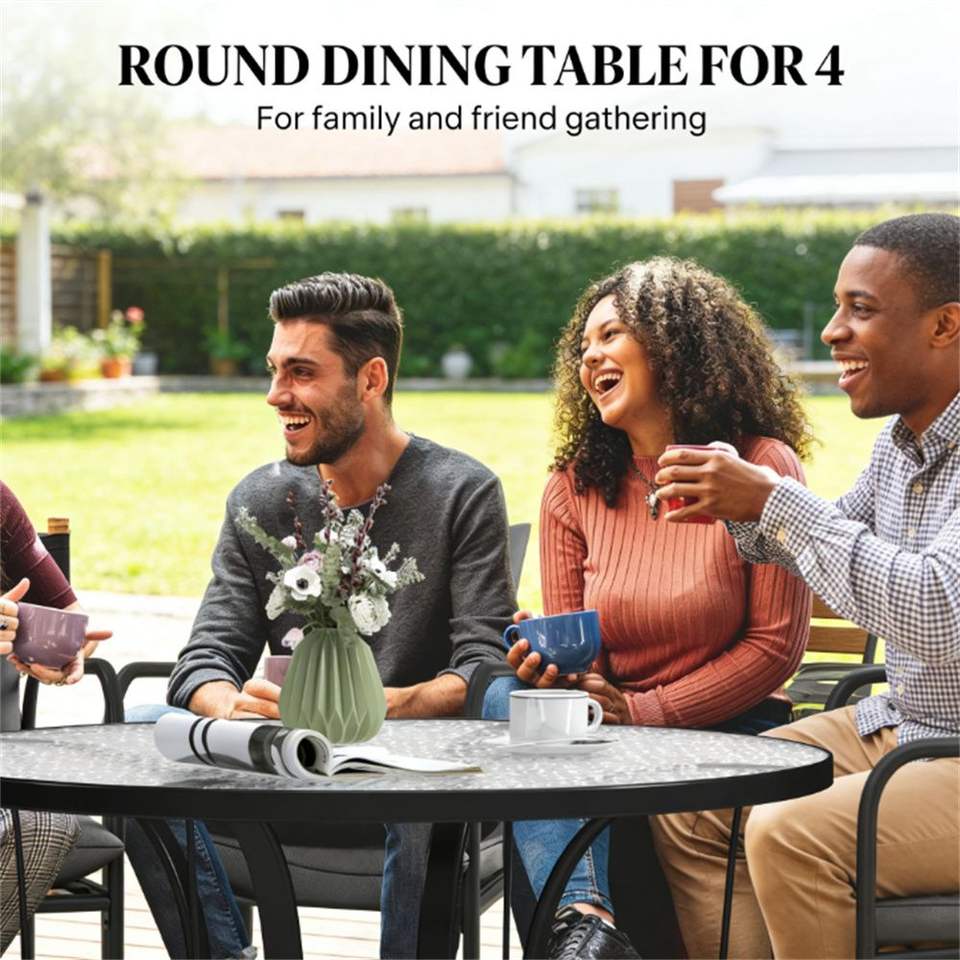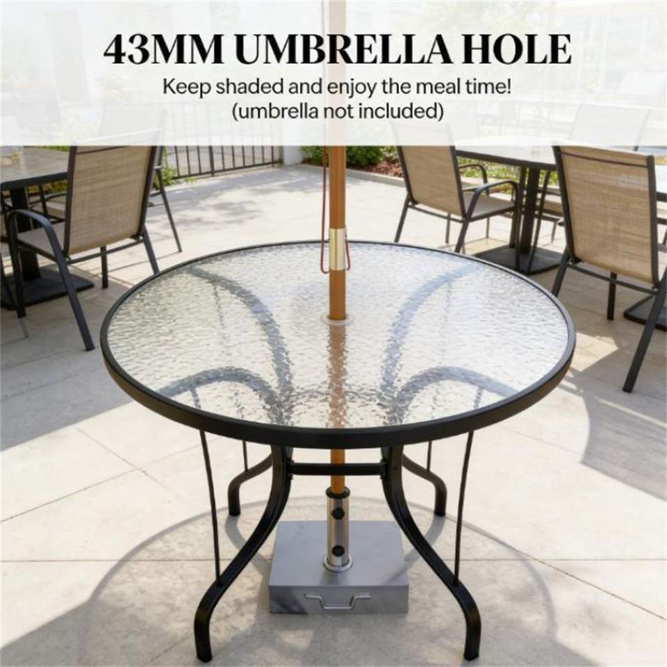 Tavolo da Pranzo Nero da Esterno con Foro per Ombrellone, Ideale per Terrazze o Uso come Tavolino da Caffè