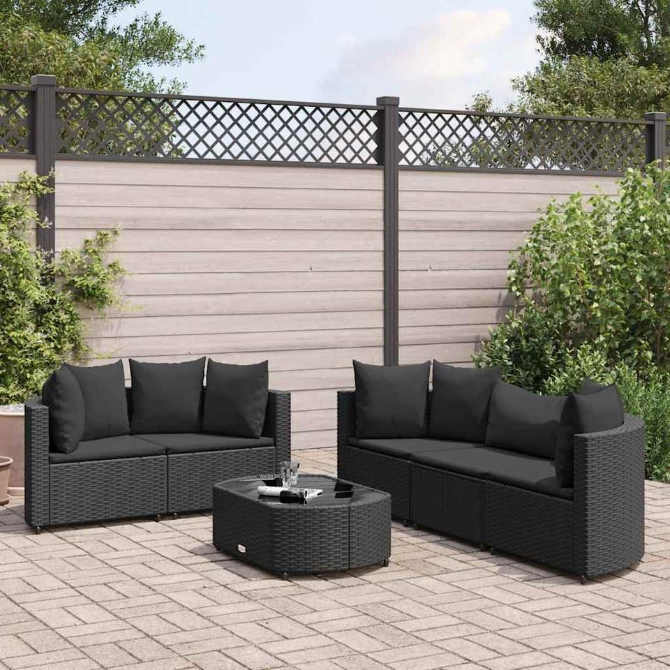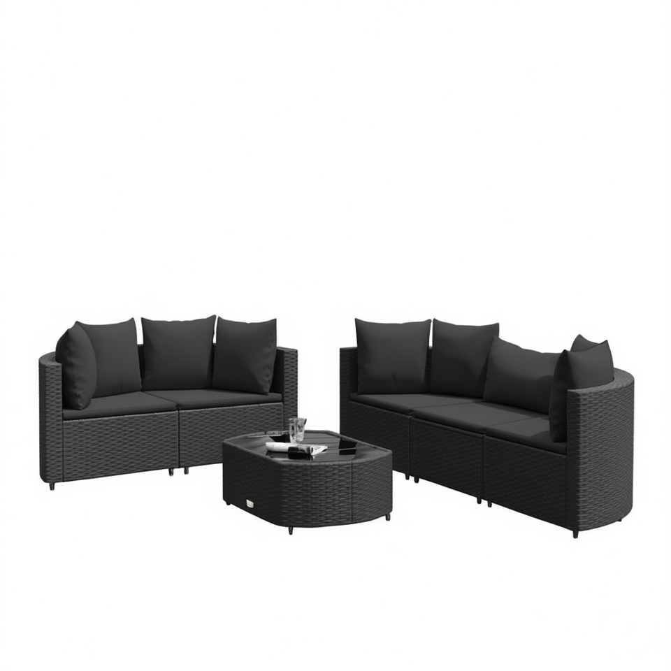 Set Divano da Giardino Nero in Rattan PE con Cuscini in Schiuma ad Alta Densità, Mobili da Esterno Impermeabili