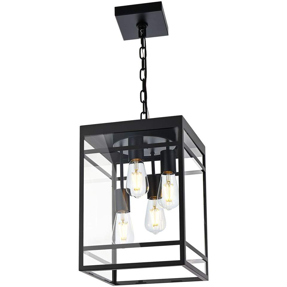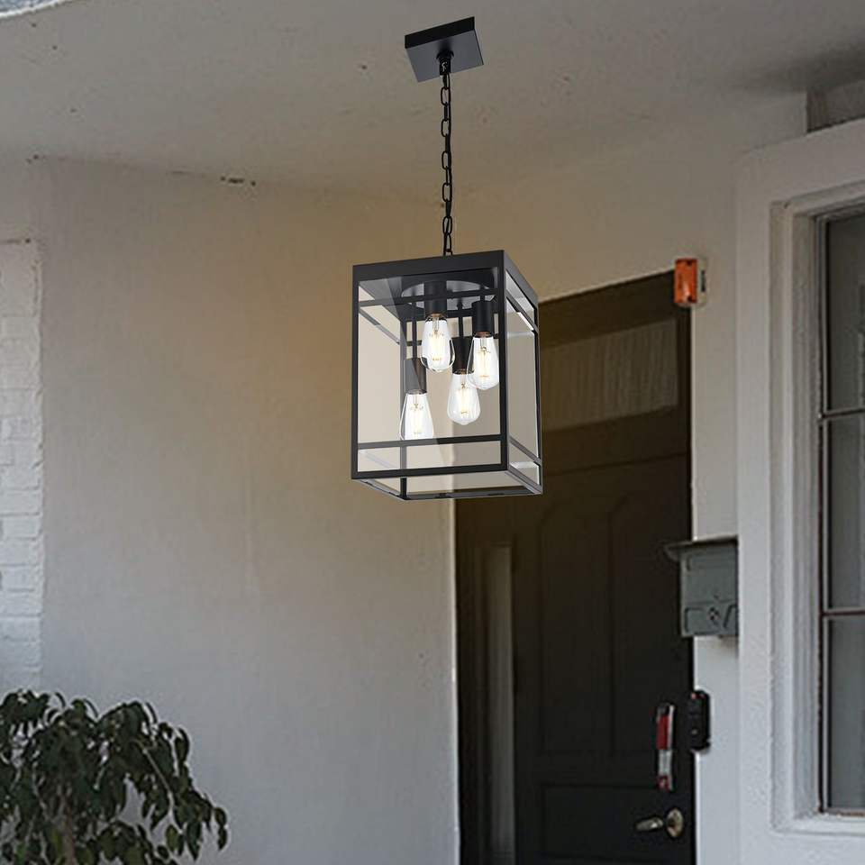 Lampada a Sospensione Nera da Esterno con Pannello in Vetro Smerigliato, Grande Lampadario Lineare da Esterno per Portico