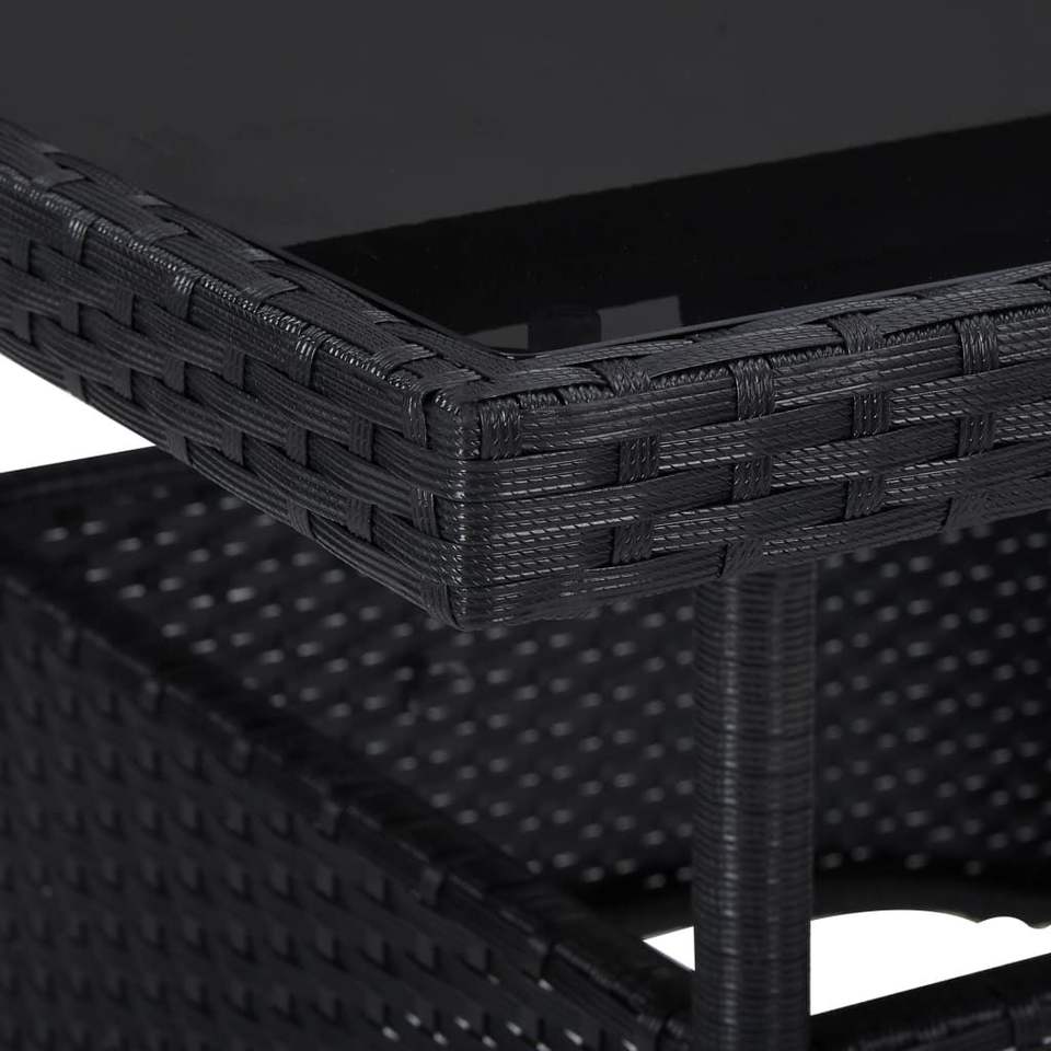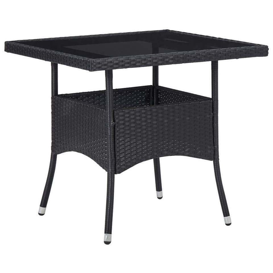 Tavolo da Pranzo in Rattan PE Nero con Struttura in Acciaio e Piano in Vetro Temperato, Arredamento Elegante per Esterni
