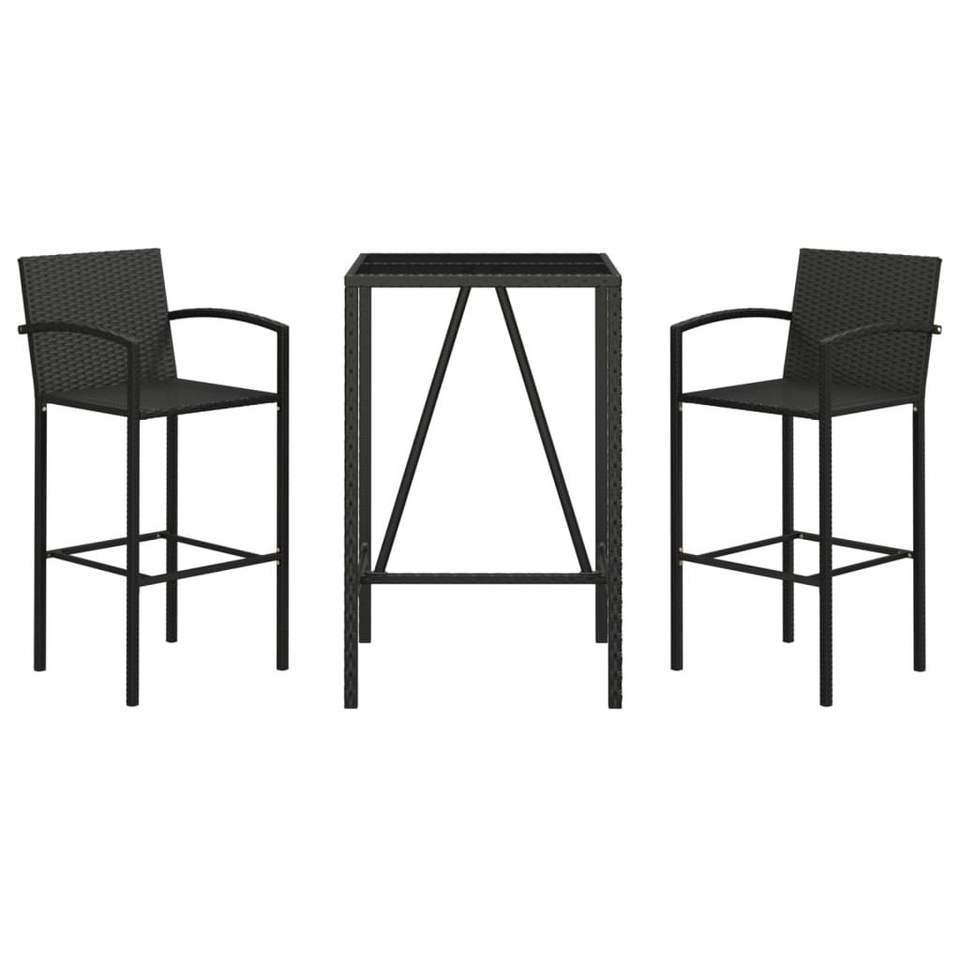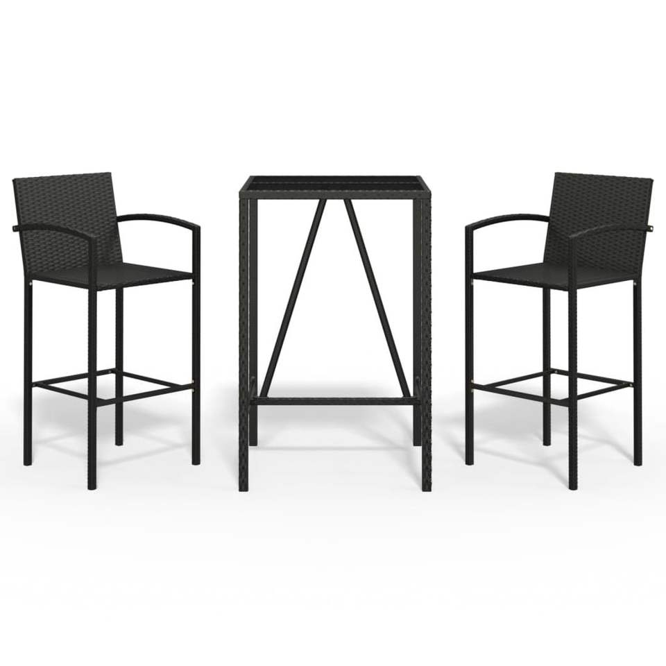 Set Bar da Giardino in Rattan PE Nero con Acciaio Verniciato a Polvere e Vetro Temperato, Arredamento Premium per Esterni