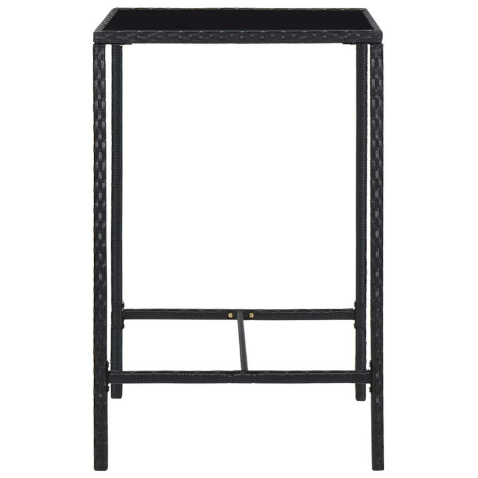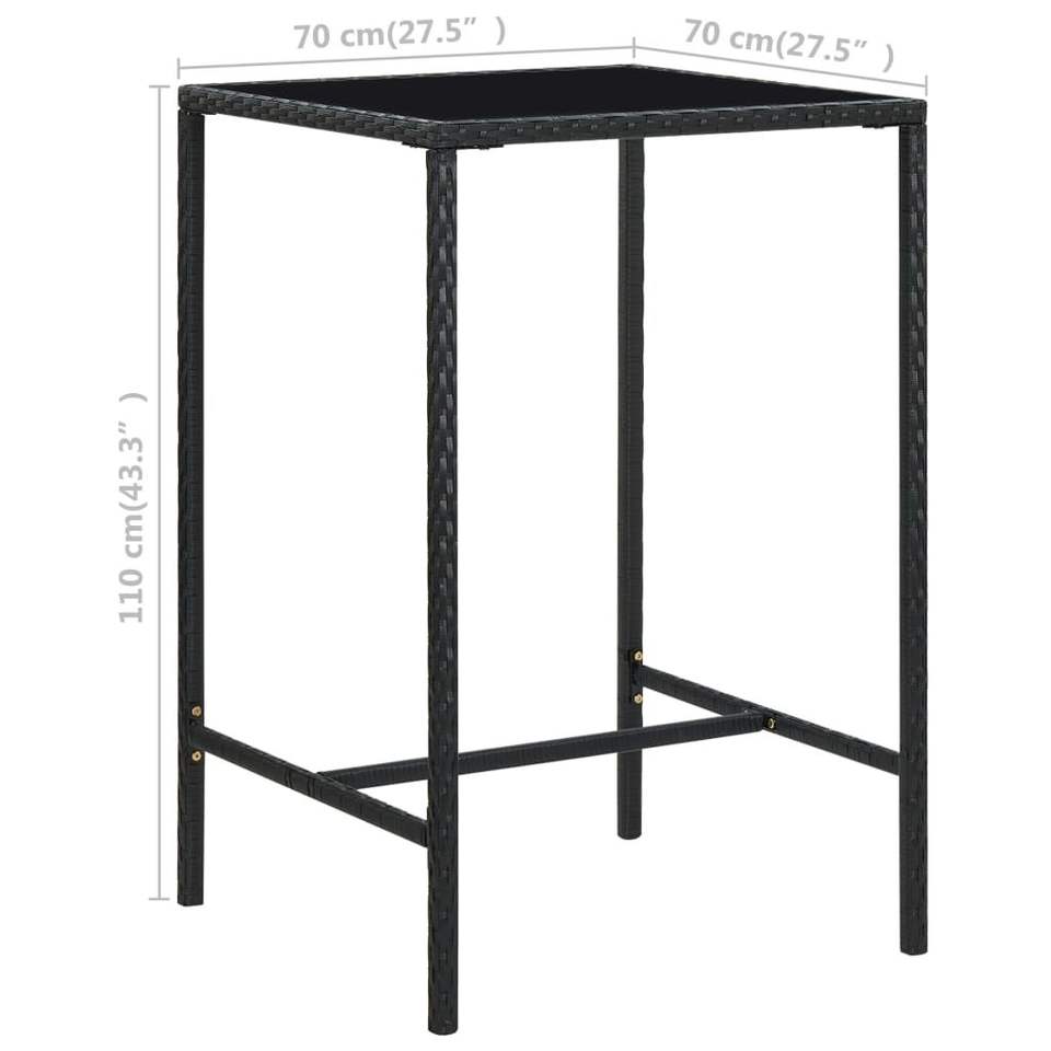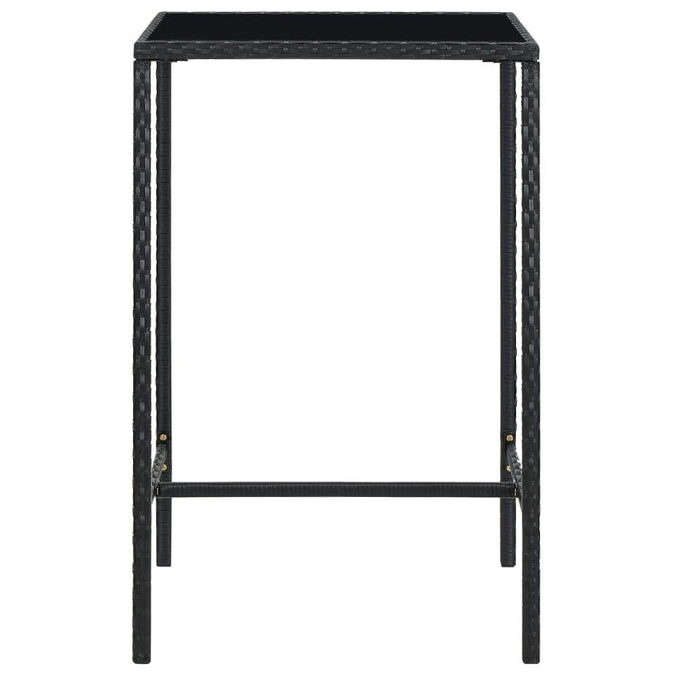 Tavolo da Bar in Rattan PE Nero e Acciaio Verniciato a Polvere con Vetro Temperato per Uso Esterno