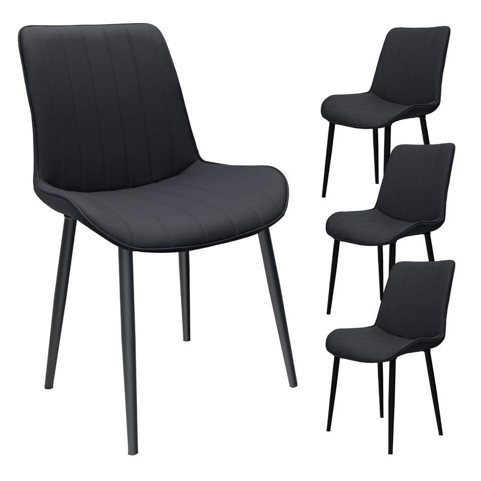 Set di 4 Sedie da Pranzo Senza Braccioli in Pelle PU Nera con Motivo a Onde e Gambe in Metallo per Cucina, Ristorante, Soggiorno