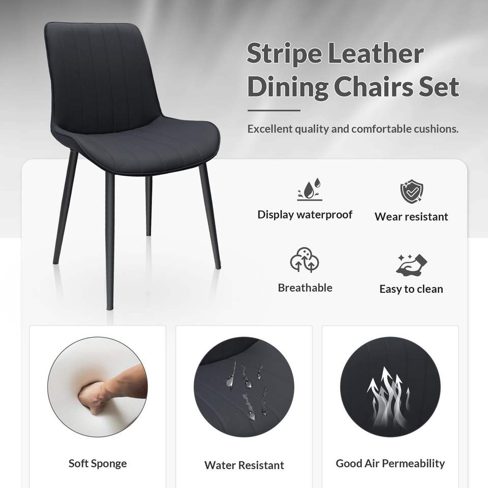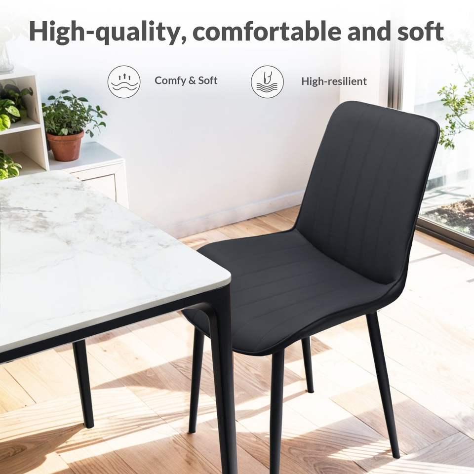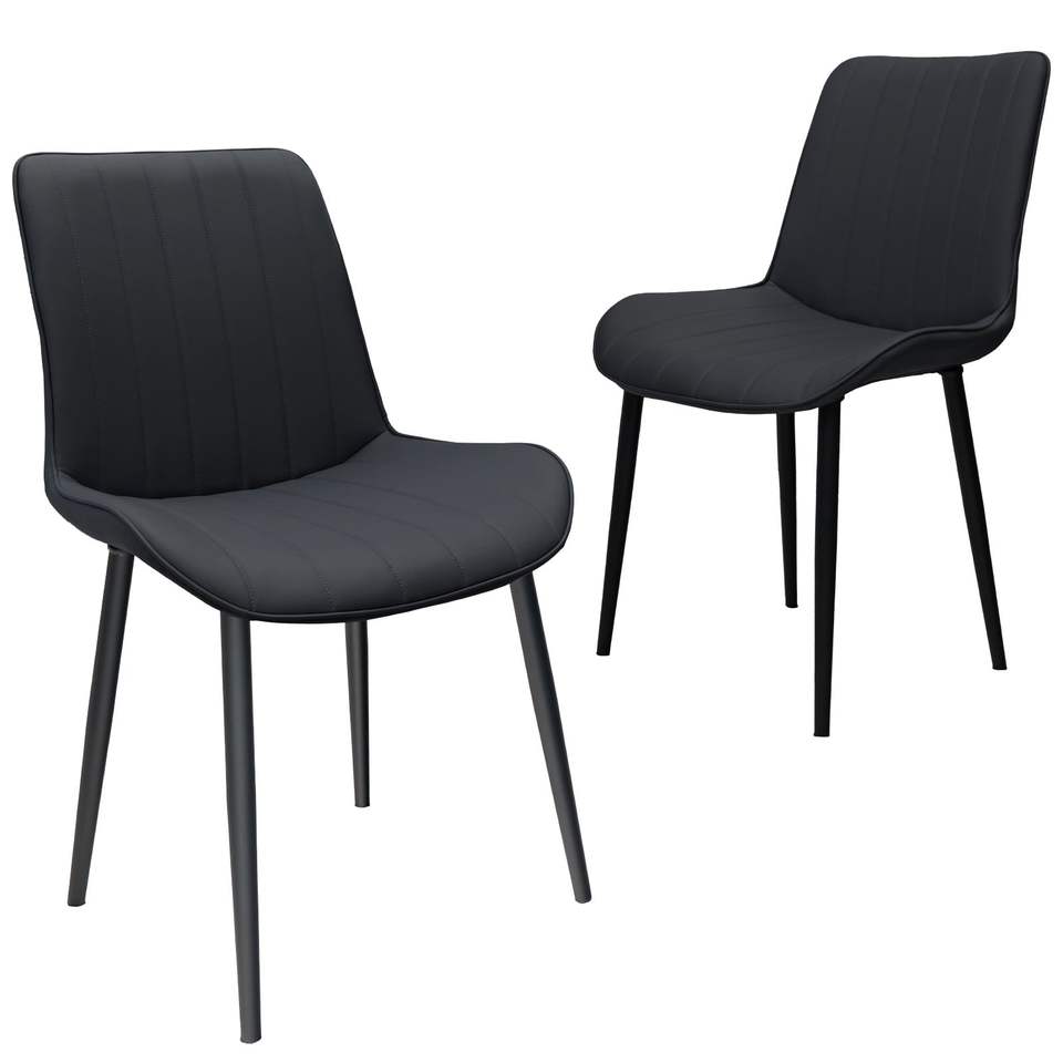 Set di 2 Sedie da Pranzo Senza Braccioli in Pelle PU Nera con Motivo a Onde e Gambe in Metallo per Cucina, Ristorante, Soggiorno