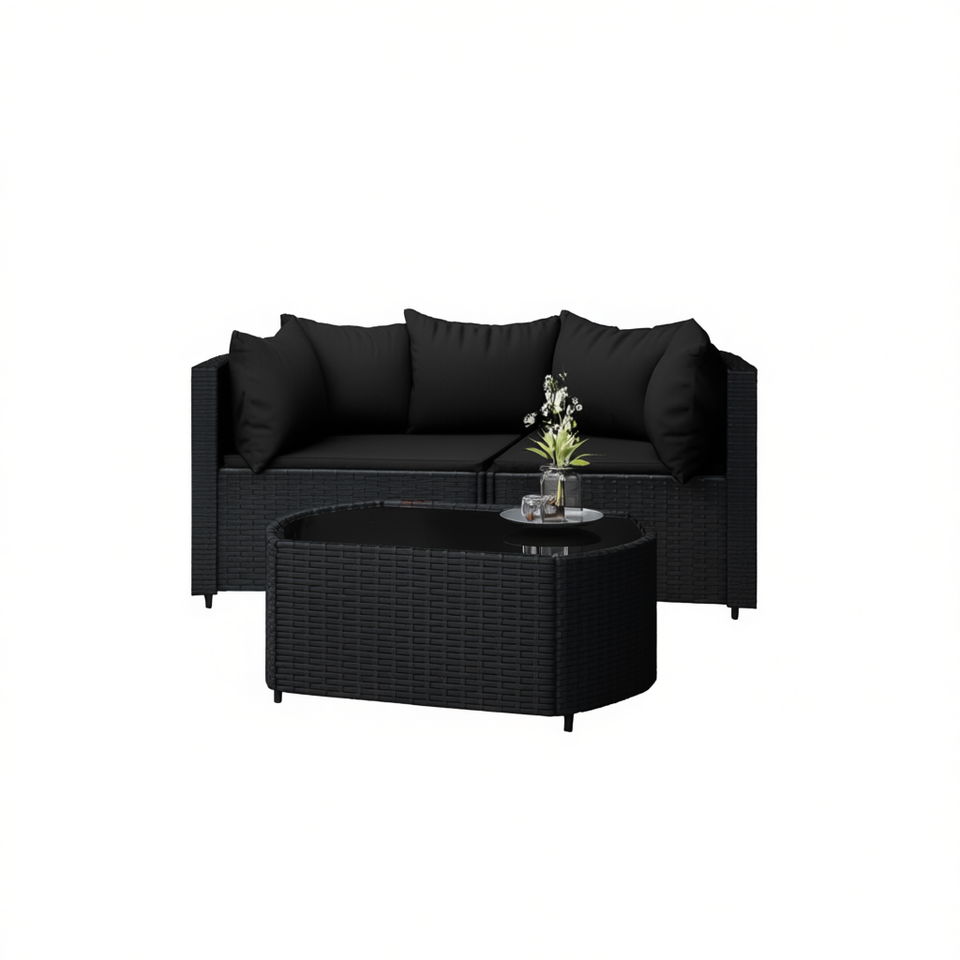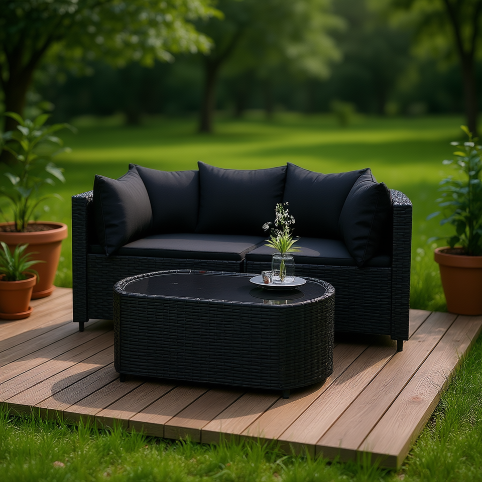 Black Rattan Patio Lounge Set 2 Seater Contemporary Garden Outdoor Furniture Collection