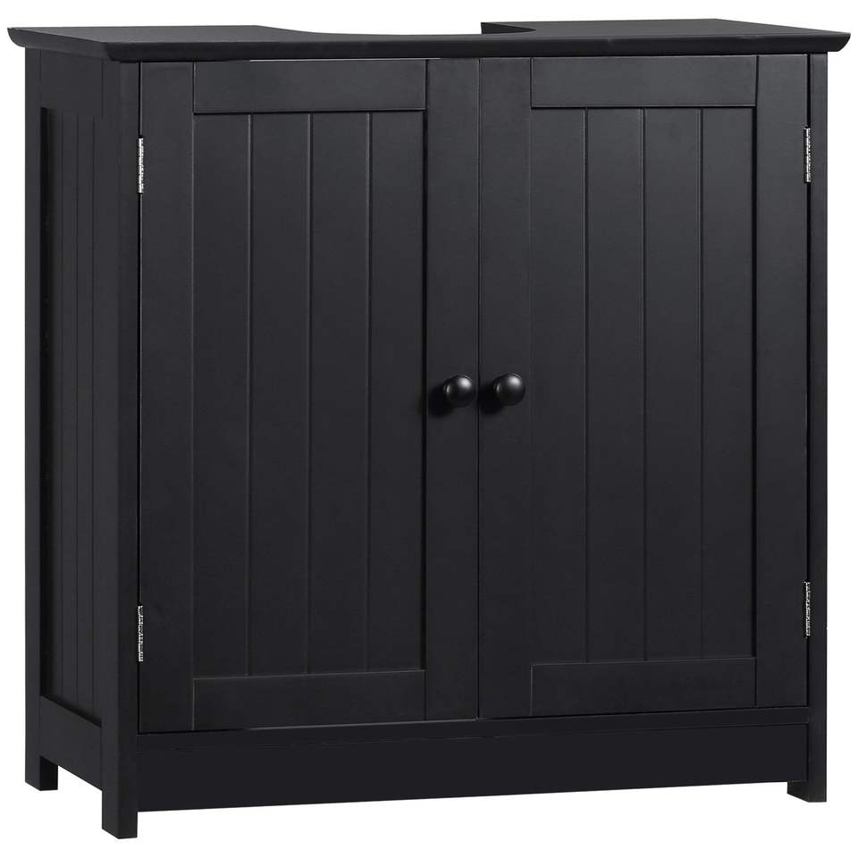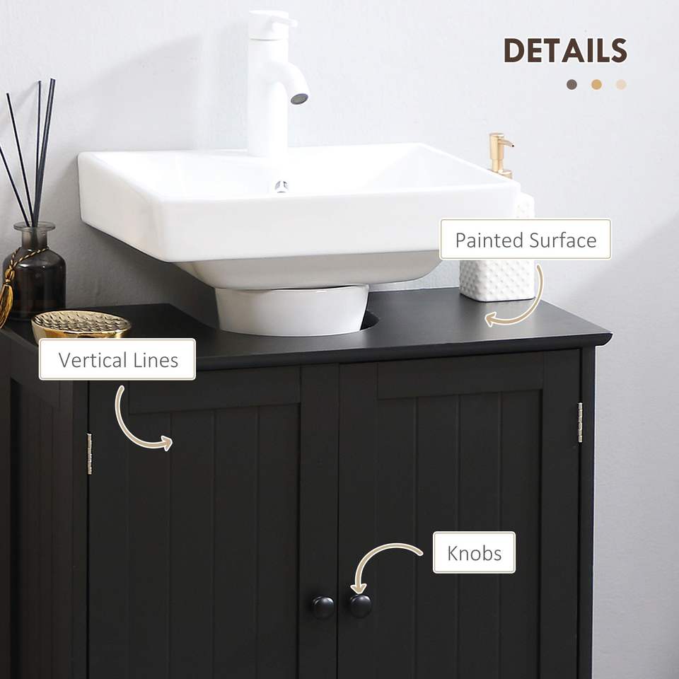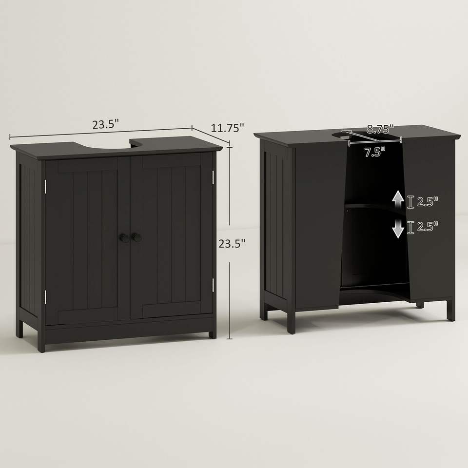 Black Pedestal Sink Bathroom Vanity Furniture 2-Door Under Sink Cabinet with Shelf