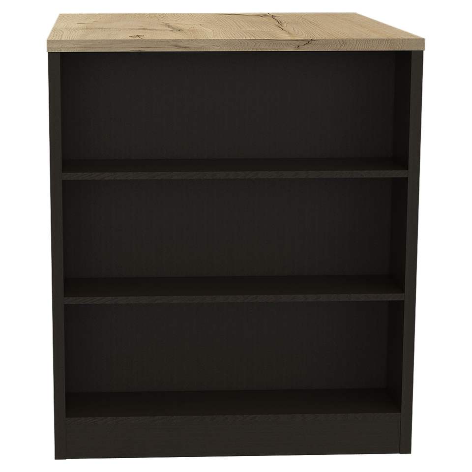 Tavolo da Cucina Nero/Pino con Due Gambe e Tre Ripiani Laterali