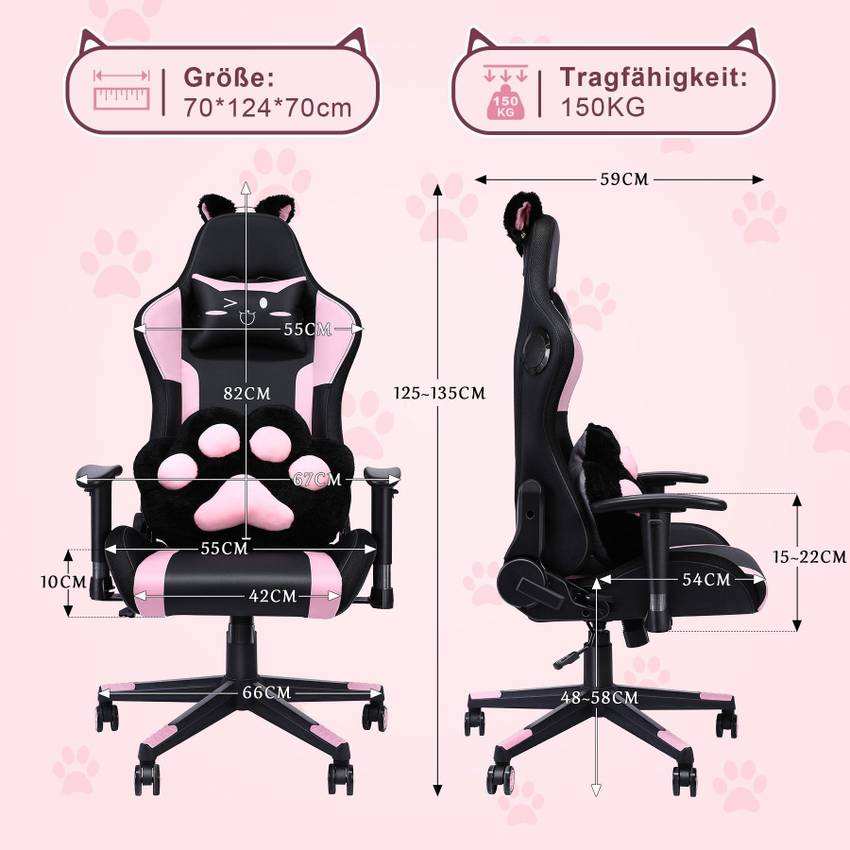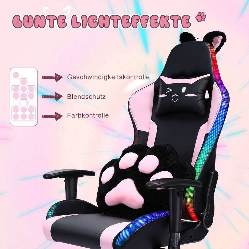 Sedia da Gaming Nera e Rosa con LED RGB, Personalizzabile, con Massaggio, Reclinabile, Schienale Alto, Braccioli Collegati, Regolabile, per Scrivania Computer
