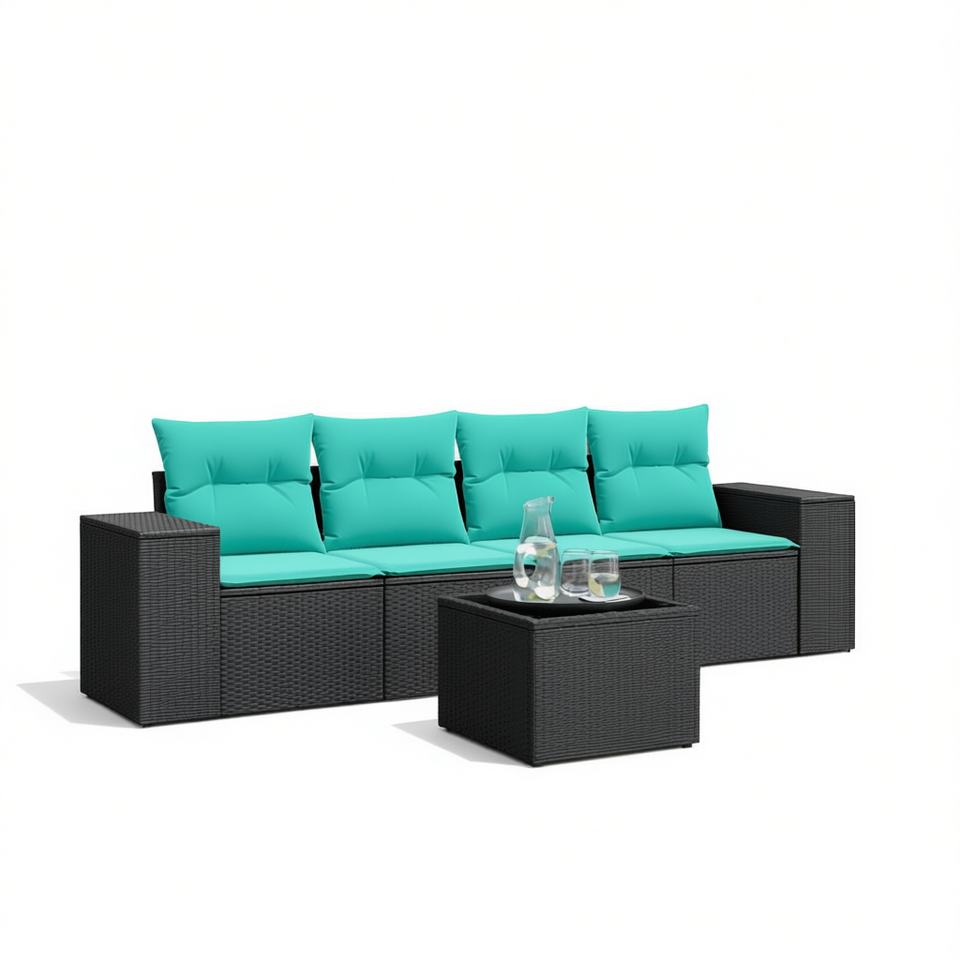 Set Divano da Giardino in Polyrattan Nero con Cuscini, 4 Posti, Arredamento da Esterno dal Design Contemporaneo