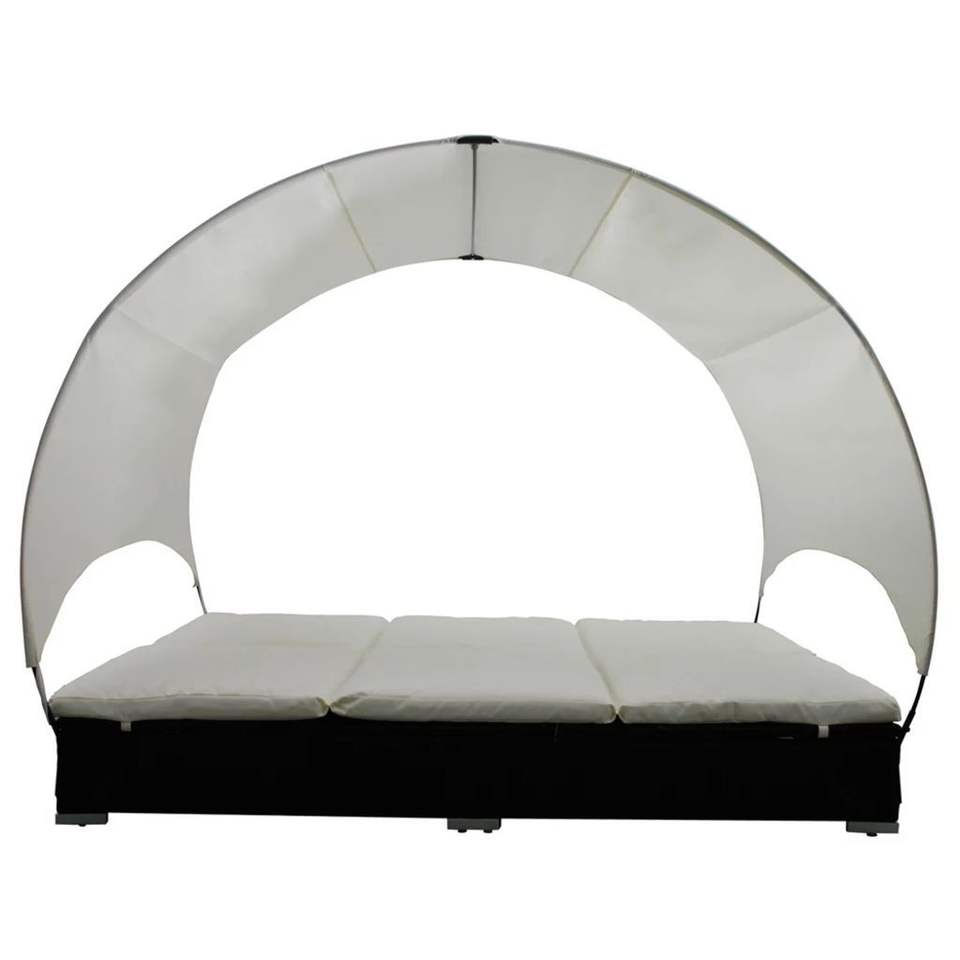 Black Poly Rattan Outdoor Lounge Bed with Canopy Roof and Cushions for Pergola Gazebo or Garden Decor