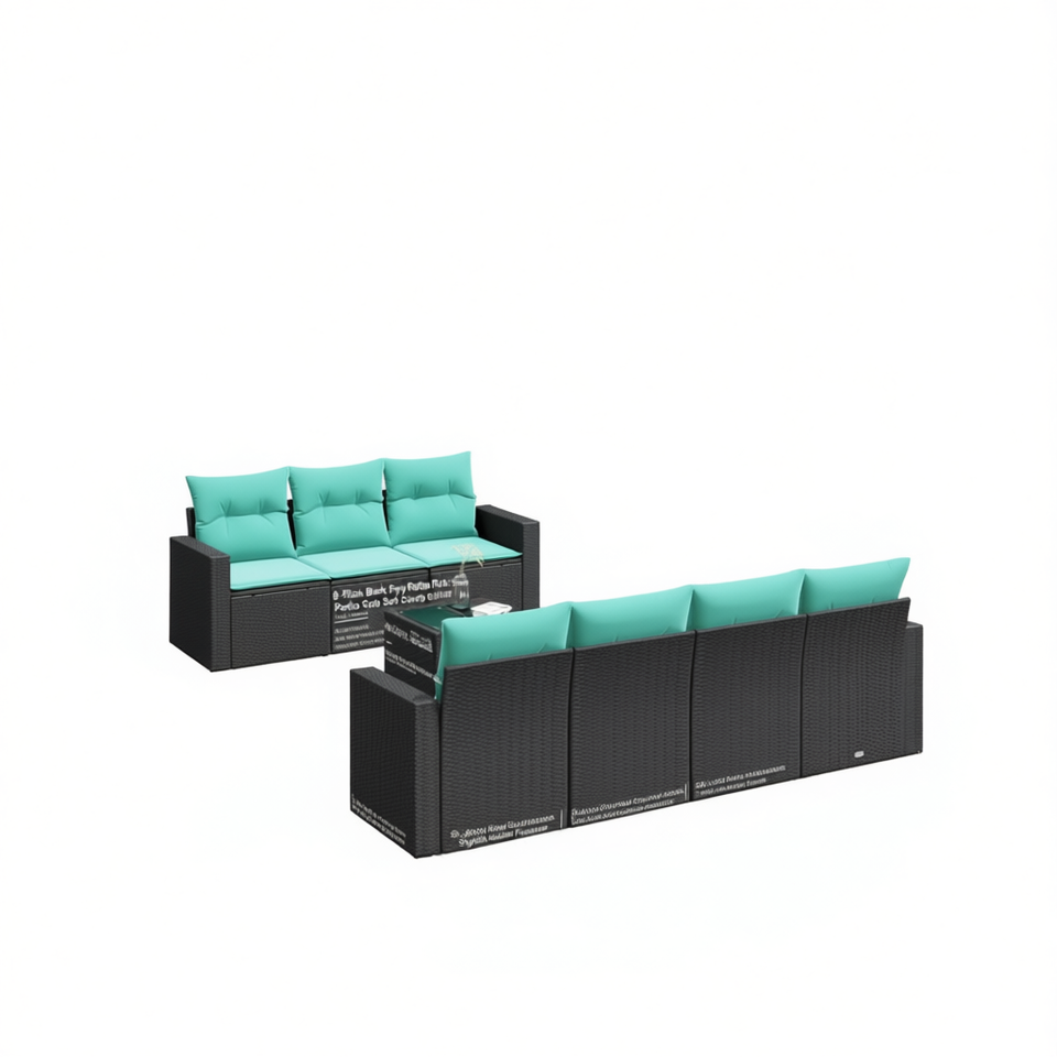 Set Divano da Esterno in Polyrattan Nero per 8 Persone con Cuscini, Design Moderno e Contemporaneo