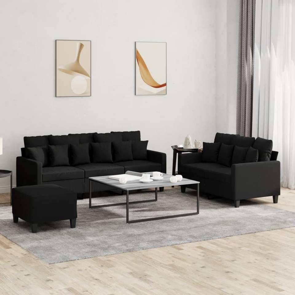 Set di Divani in Poliestere Nero con Struttura in Metallo a 3 e 2 Posti, Mobili per Soggiorno in Compensato