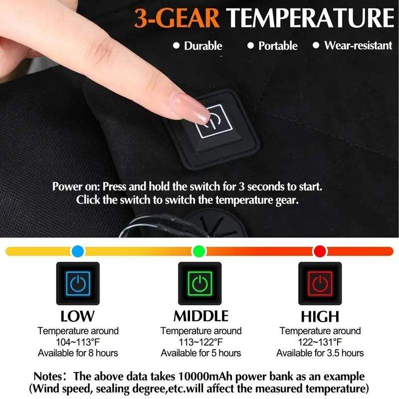 Cuscino Riscaldante Portatile Nero Alimentato USB con 3 Livelli di Calore Regolabili, Pieghevole, per Uso Interno/Esterno, Stadio, Campeggio