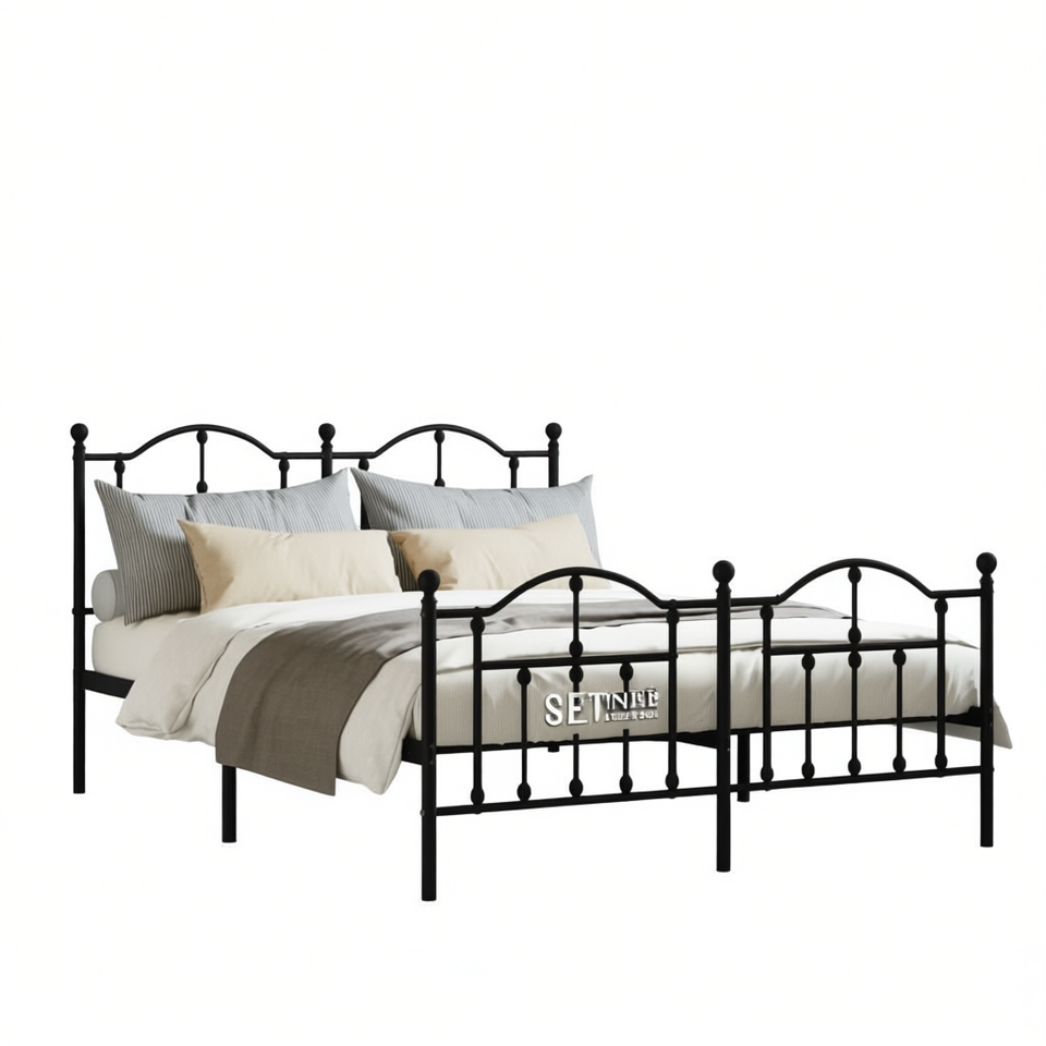 Struttura letto in metallo nera verniciata a polvere, rettangolare, tradizionale, per camera da letto