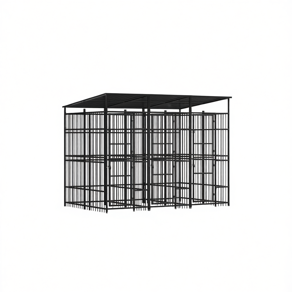 Recinto per Cani in Acciaio Verniciato a Polvere Nera, 59,5 Piedi Quadrati, Cuccia da Esterno per Razze Grandi, Design Rettangolare Resistente