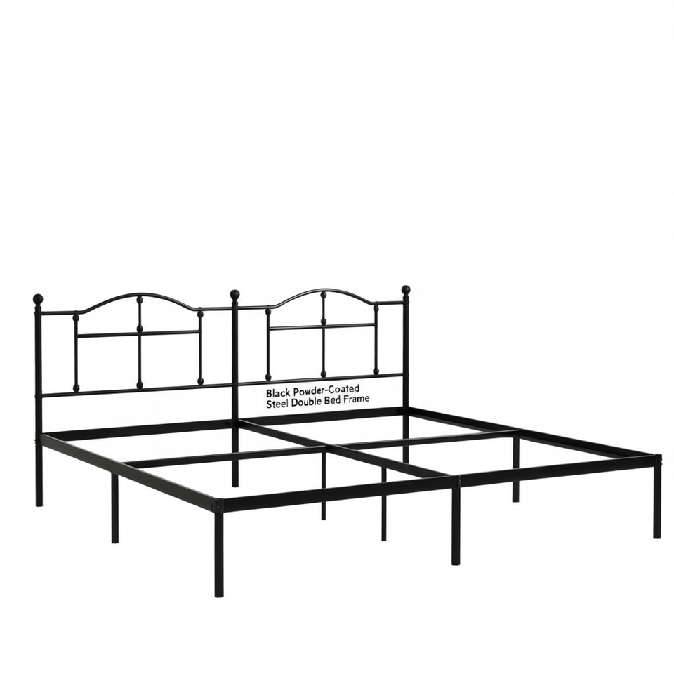 Struttura letto matrimoniale in acciaio verniciato a polvere nero, letti in metallo, mobili industriali per camera da letto