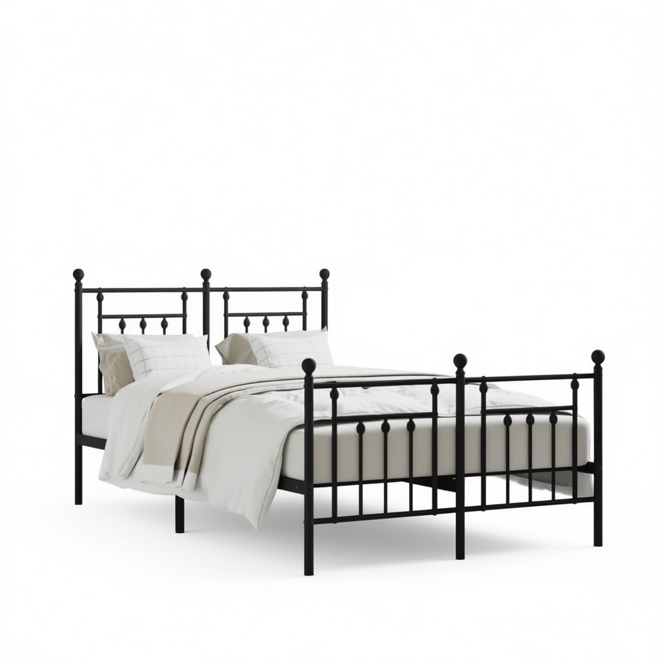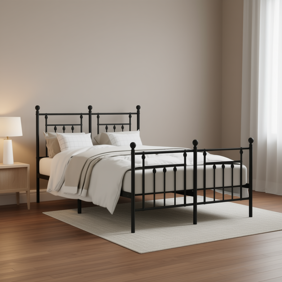 Struttura letto rettangolare completa in acciaio verniciato a polvere nero, letti in metallo, mobili industriali per camera da letto