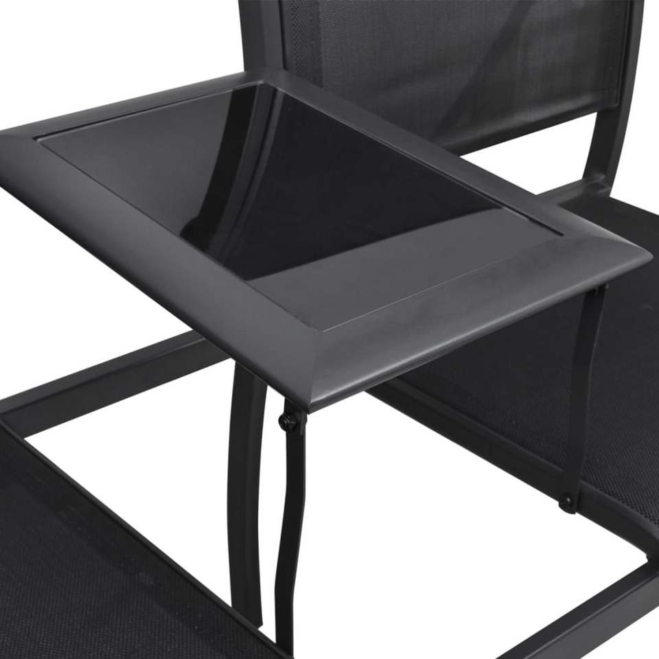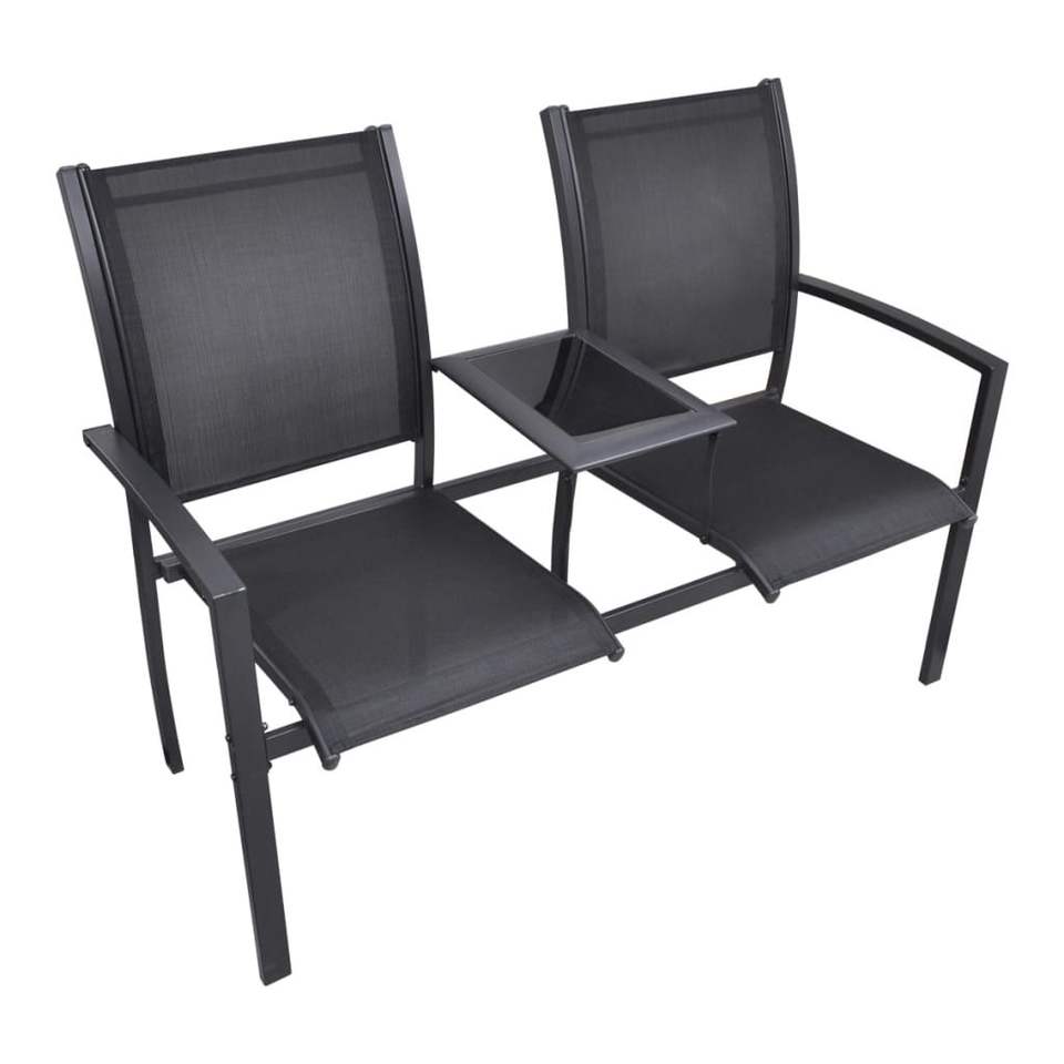 Panca da Esterno a 2 Posti in Acciaio Verniciato a Polvere Nera con Textilene, Design Moderno e Contemporaneo