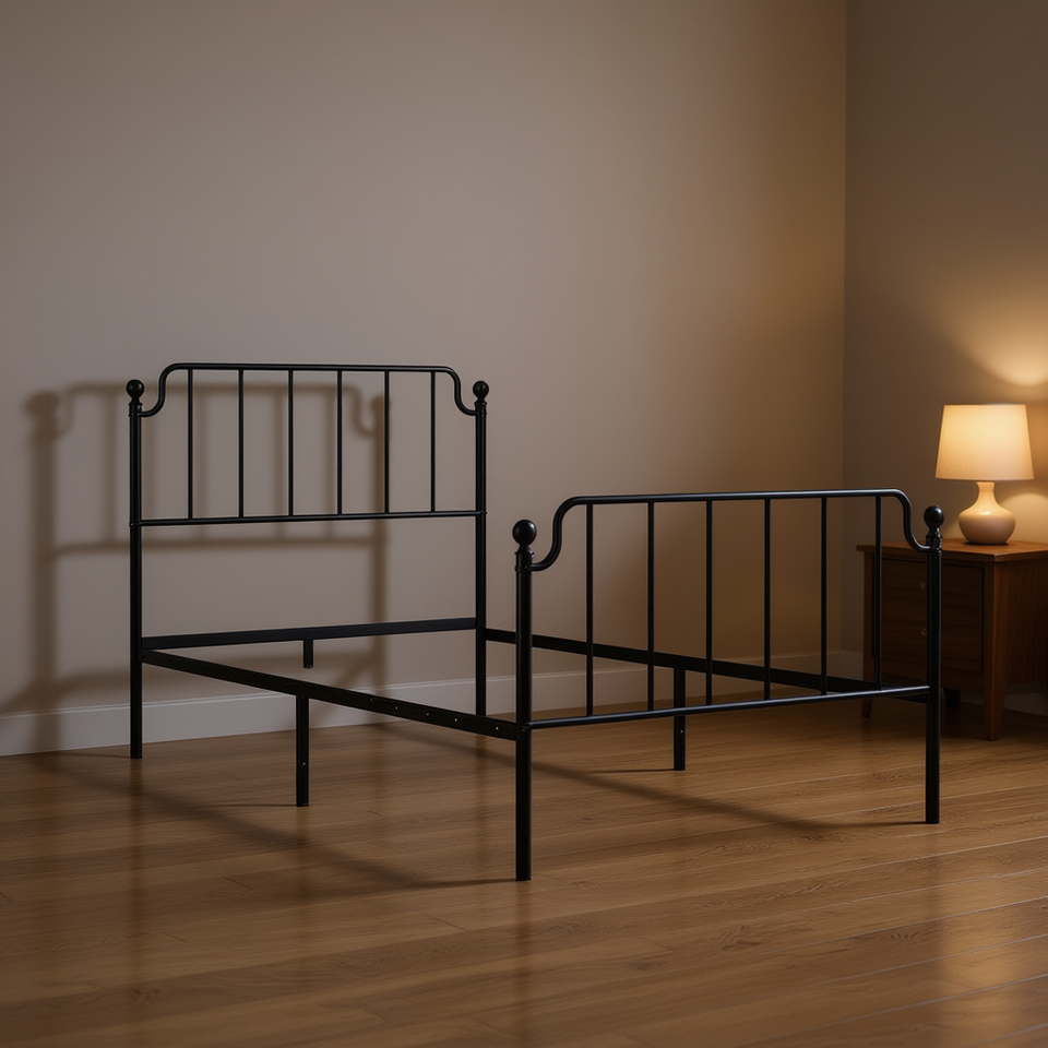 Struttura Letto Singolo in Acciaio Verniciato a Polvere Nera, Design Industriale Rettangolare per Camera da Letto