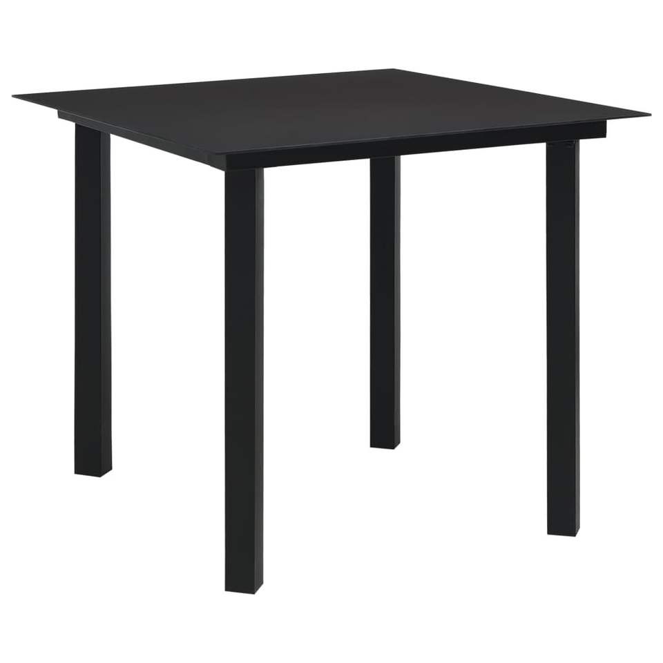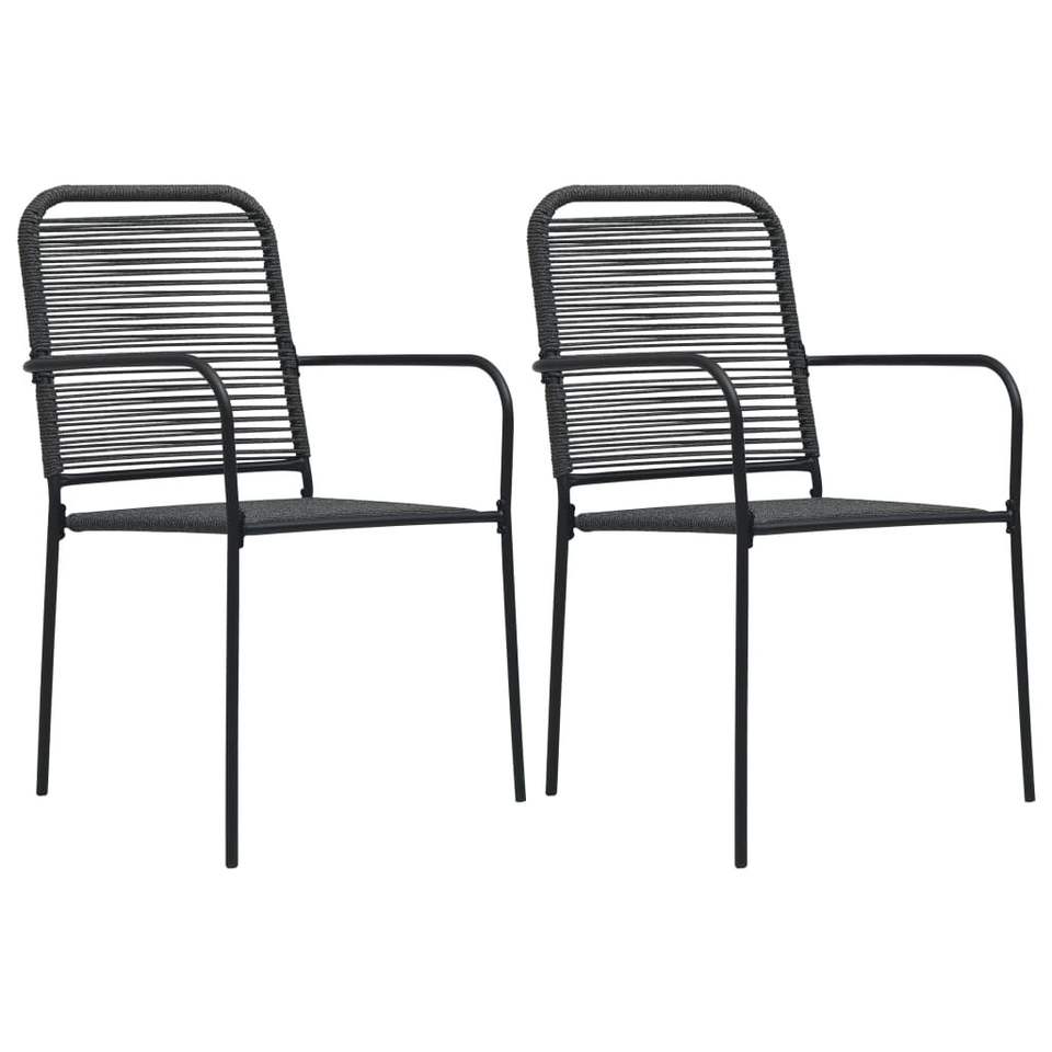 Set da Pranzo da Giardino in Acciaio Verniciato a Polvere Nera con Vetro e Corda di Cotone, Arredamento da Patio