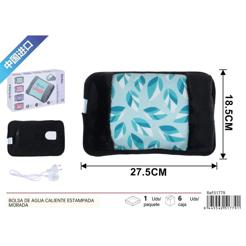 Black Printed 2L Rubber Hot Water Bottle Novelty Hand Warming Bag with Plush 2000ml Capacity