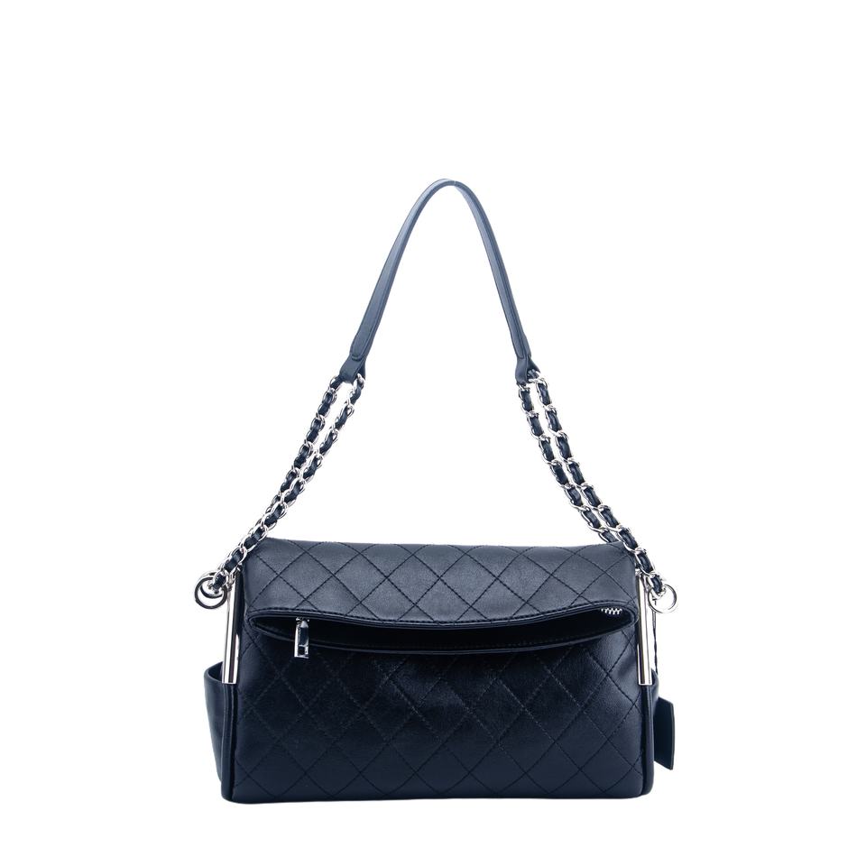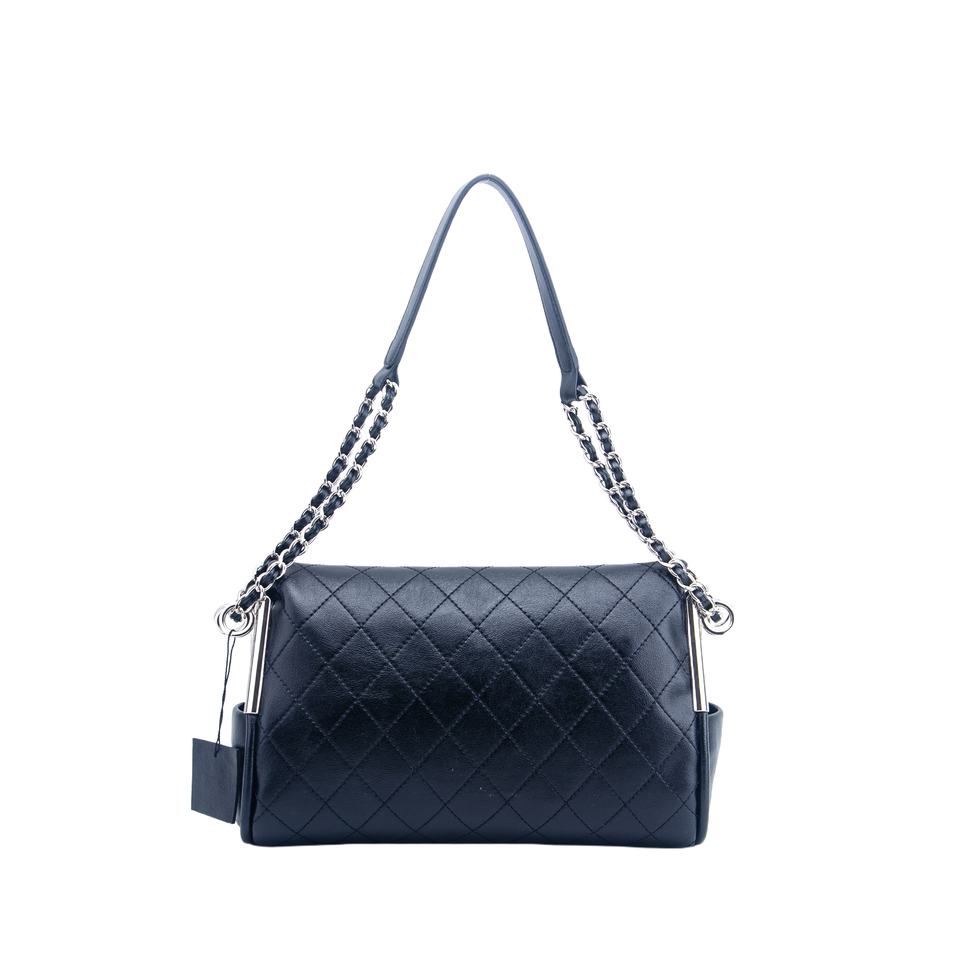 Black Quilted Tote Bag - Diamond Pattern Handbag with Silver Chain Strap for Work & Formal Occasions