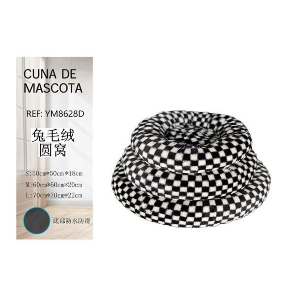 Black Rabbit Plush Round Nest Three-Piece Classic Anti-Slip Cat Bed Cave Set