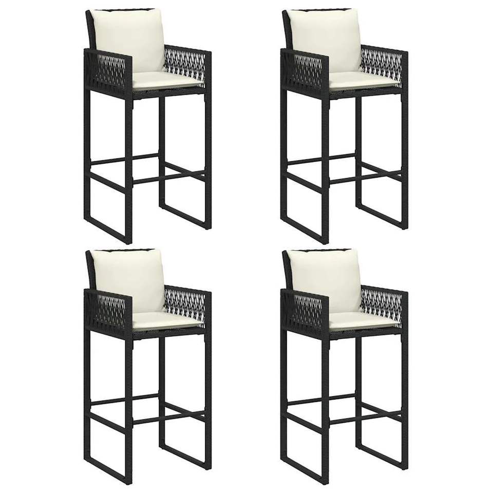 Set Bar da Giardino in Rattan Nero 4 Posti, Arredamento da Esterno Resistente alle Intemperie, Design Contemporaneo