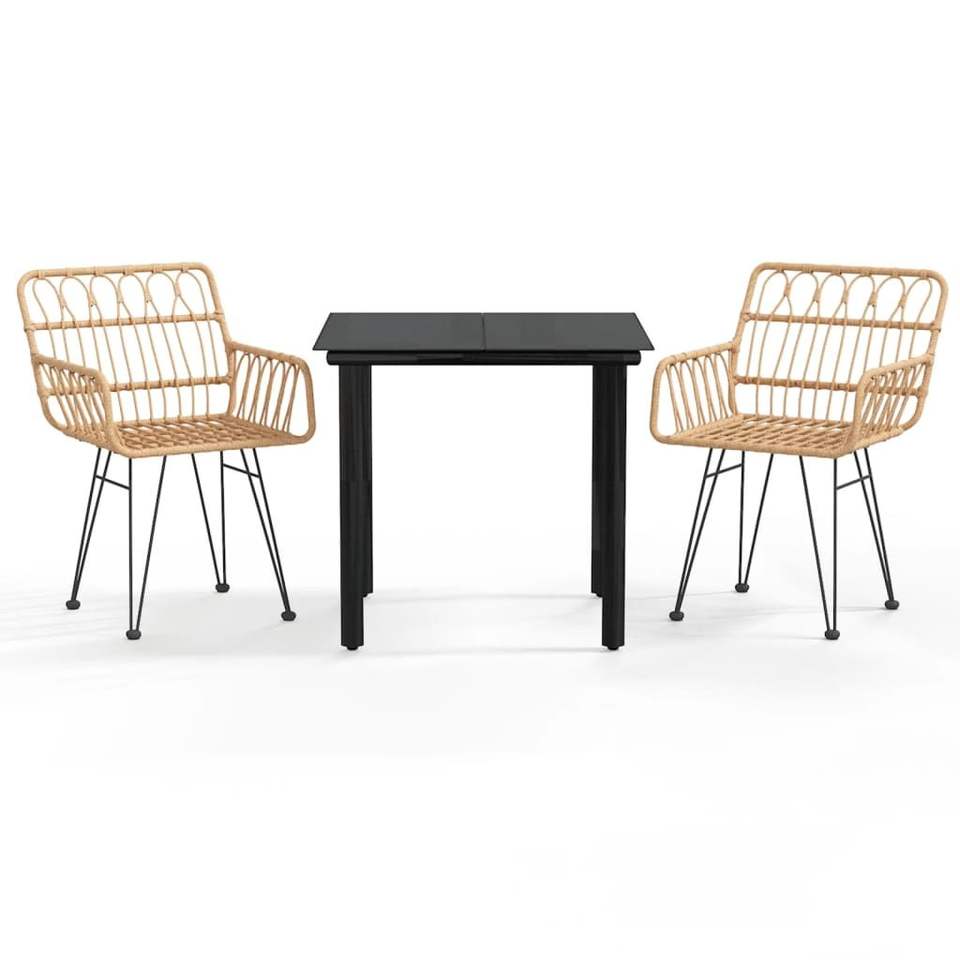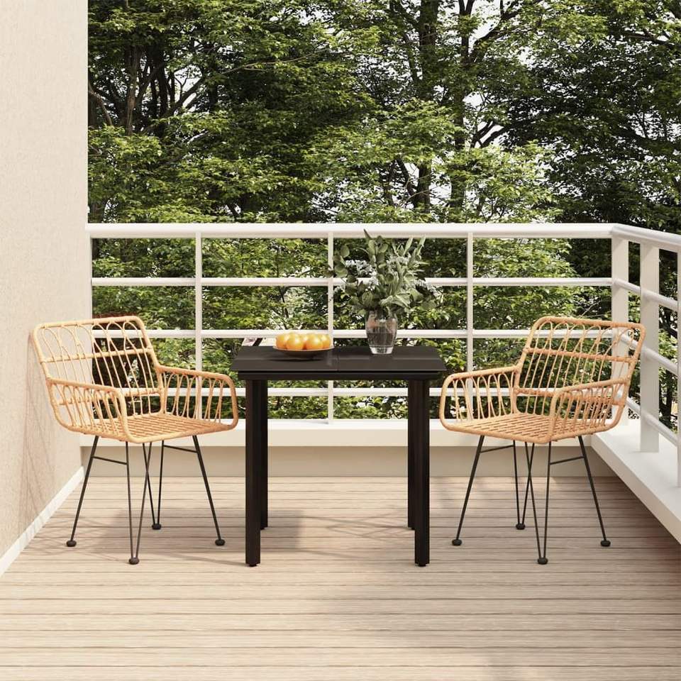 Set da Pranzo da Giardino in Rattan Nero per 2 Persone, Struttura in Metallo, Arredamento Esterno Contemporaneo Resistente alle Intemperie