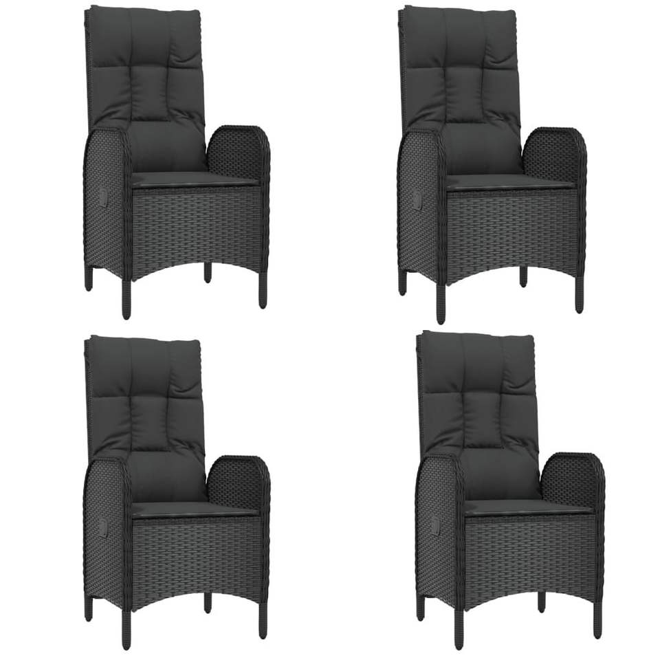 Set da Pranzo da Giardino in Rattan Nero per 4 Persone, Resistente alle Intemperie, Arredamento da Esterno in Stile Contemporaneo