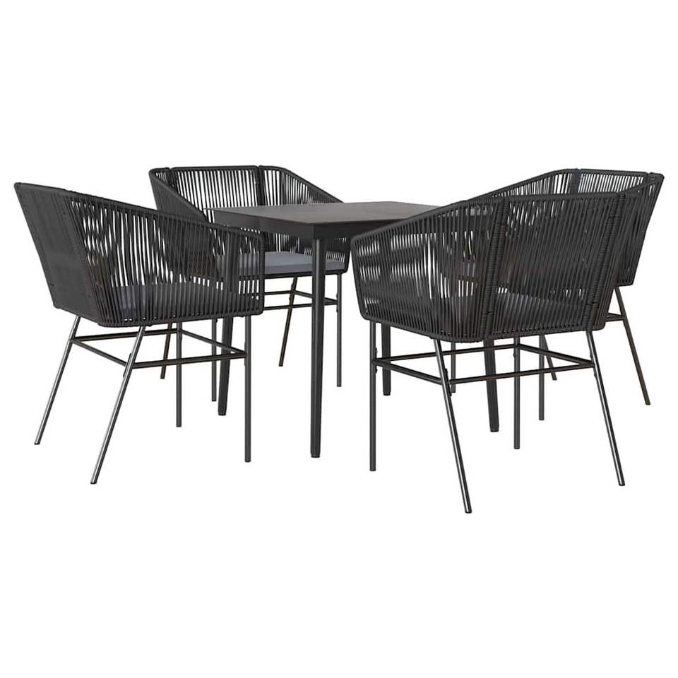 Set da Pranzo da Giardino in Rattan Nero per 4 Persone, Arredamento da Esterno Contemporaneo con Telaio in Metallo Resistente alle Intemperie