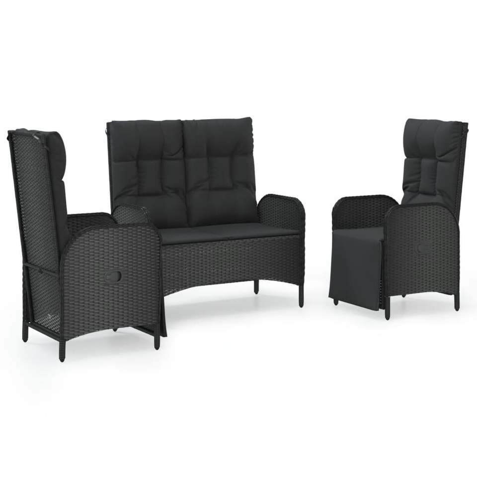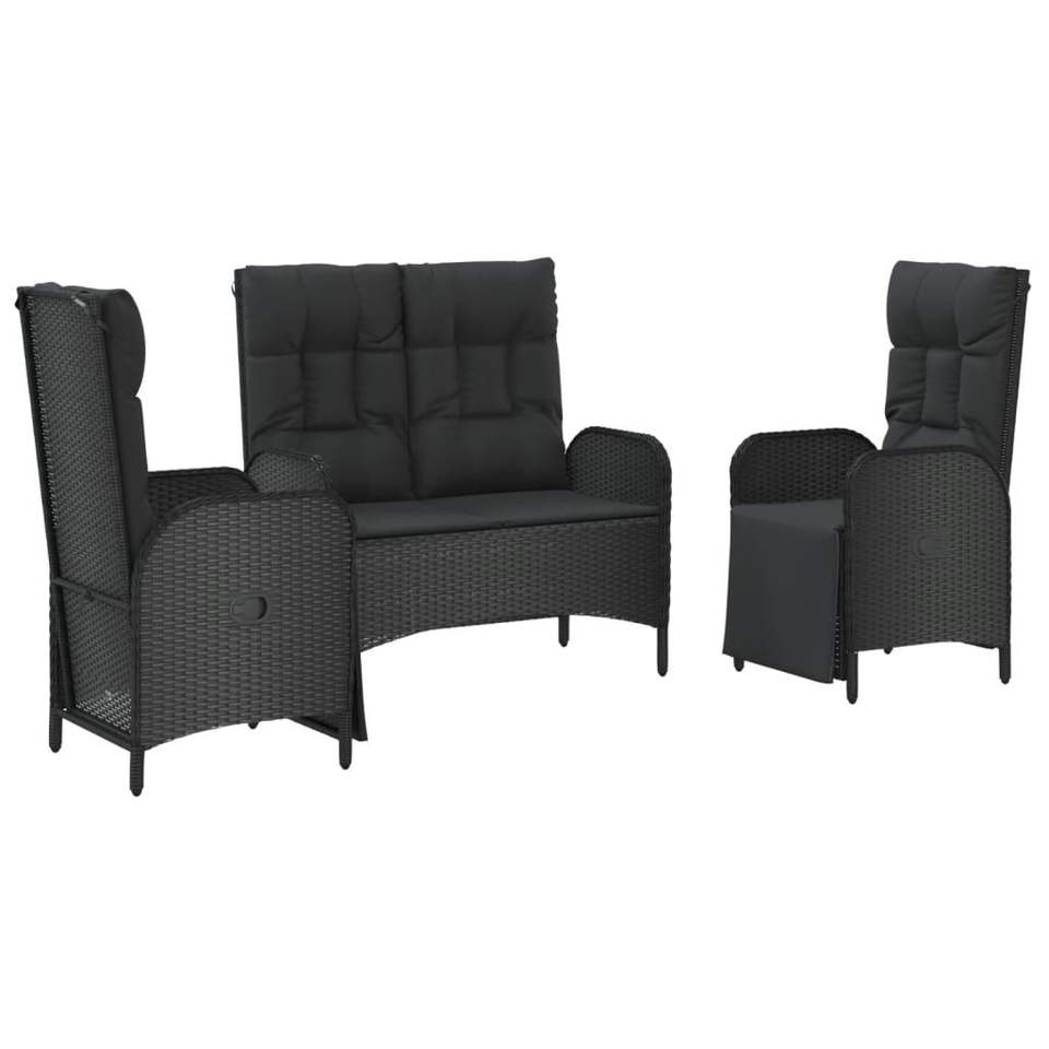 Set da Giardino in Rattan Nero per 4 Persone, Arredamento da Esterno Resistente alle Intemperie, Design Contemporaneo