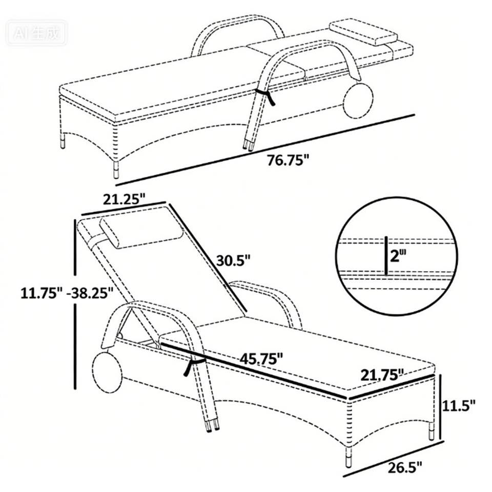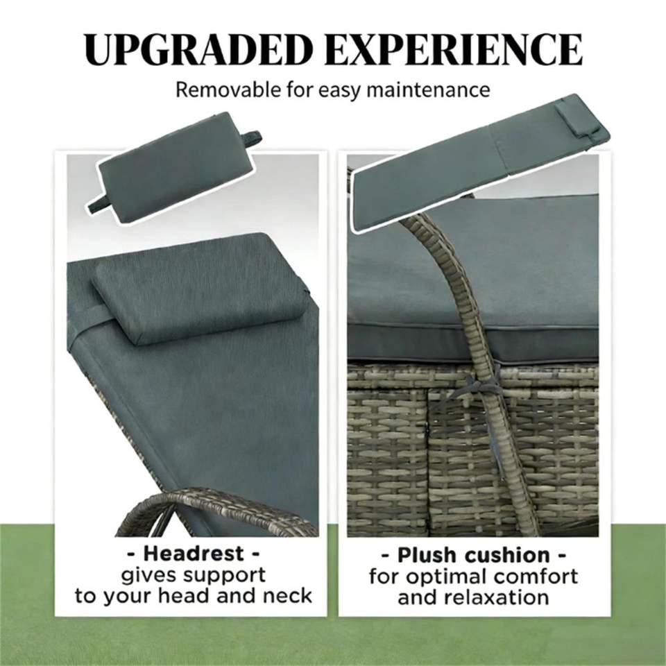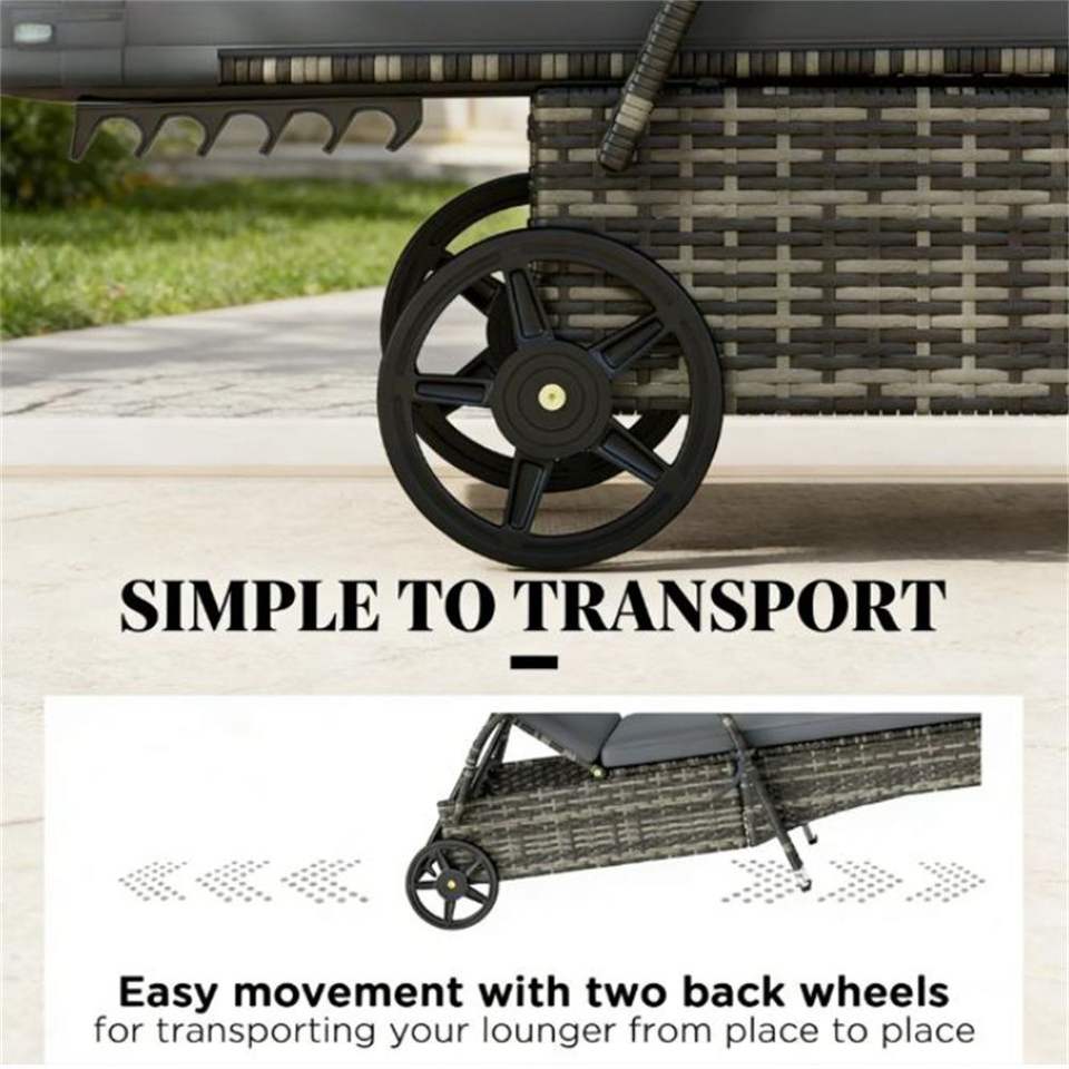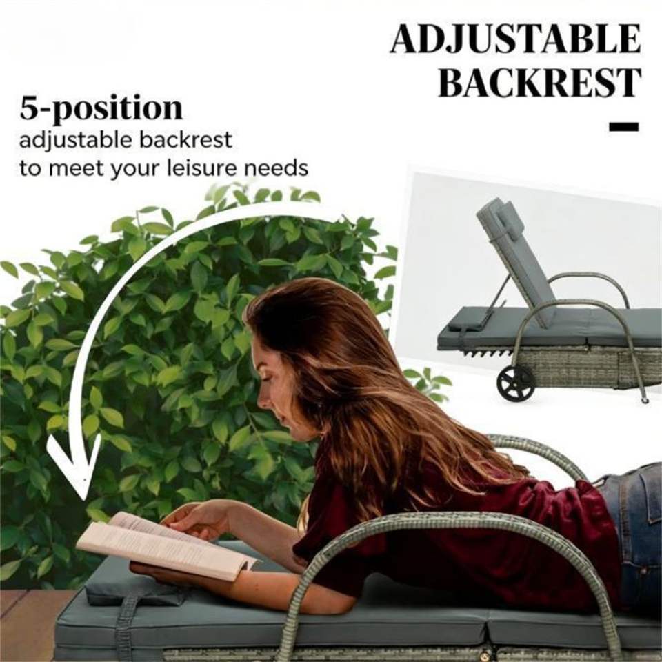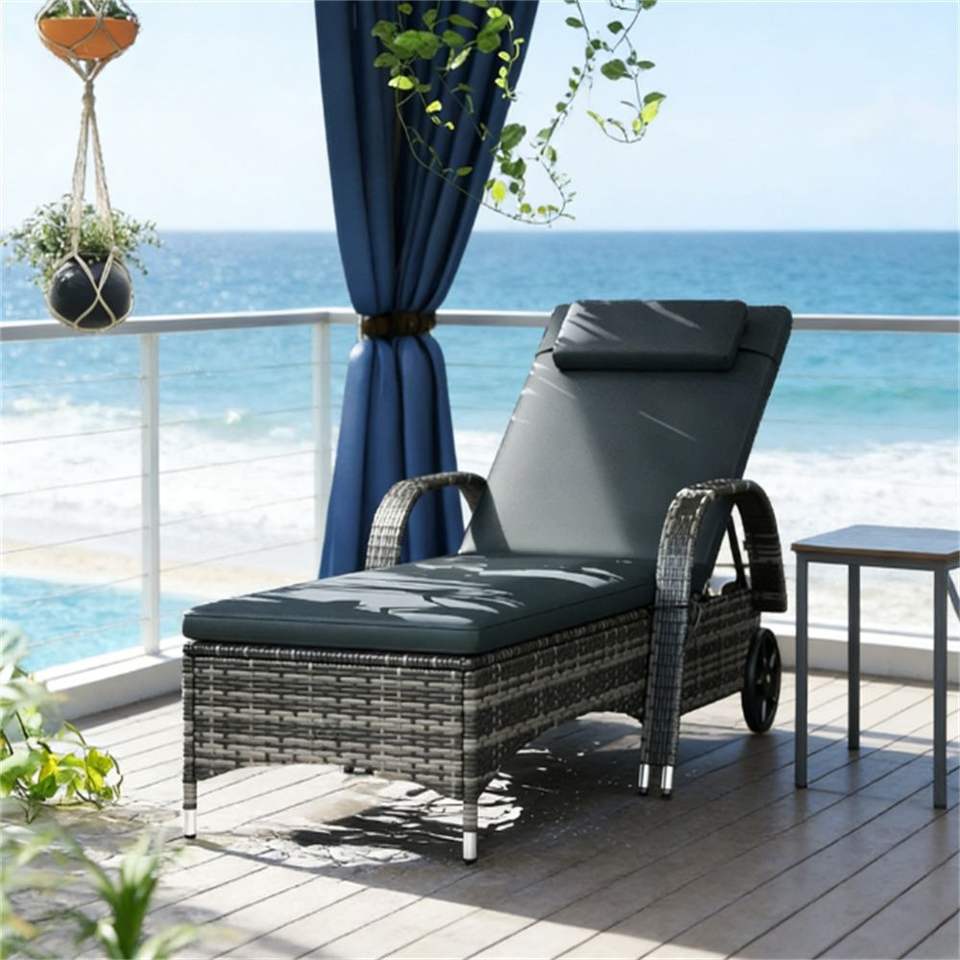 Sedia Lounge da Esterno in Rattan Nero con Schienale per Cortile