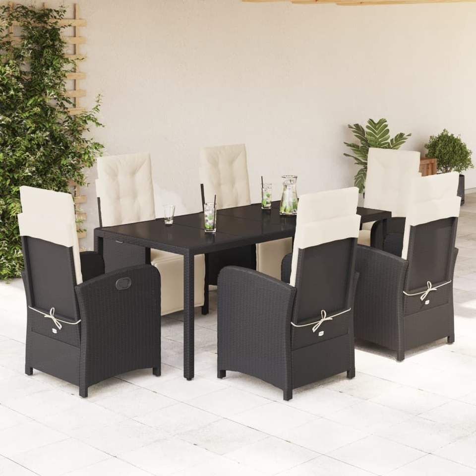 Set da Pranzo da Esterno in Rattan Nero per 6 Persone, Resistente alle Intemperie, Arredamento da Giardino dal Design Contemporaneo