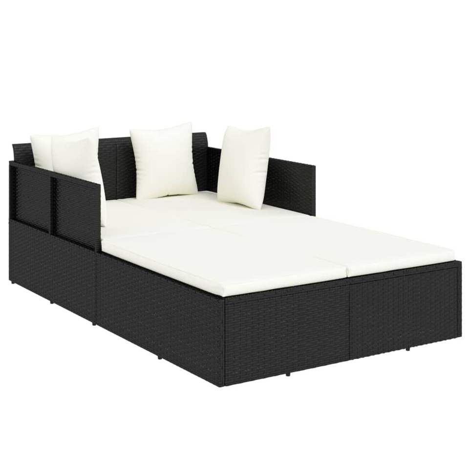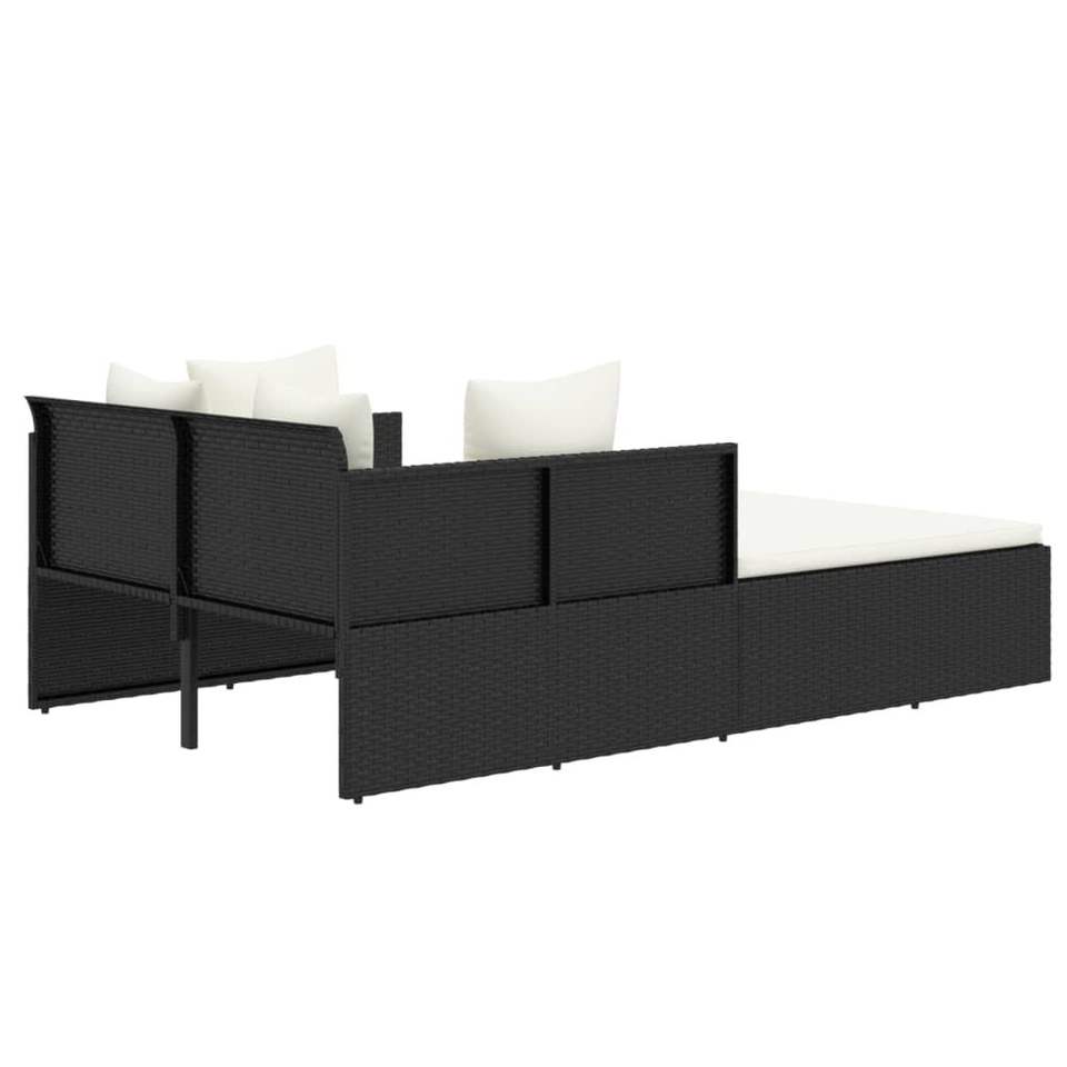 Black Rattan Sunbed with Cream White Cushions Stylish Lounger Product