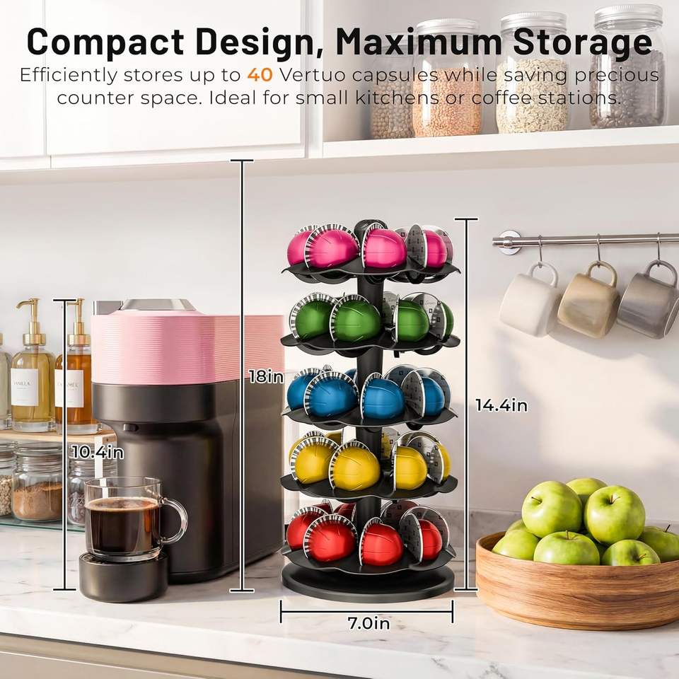 Portacapsule Rotante Nero per 40 Capsule di Caffè Nespresso Vertuoline, Compatibile con Macchine Nespresso Vertuoline