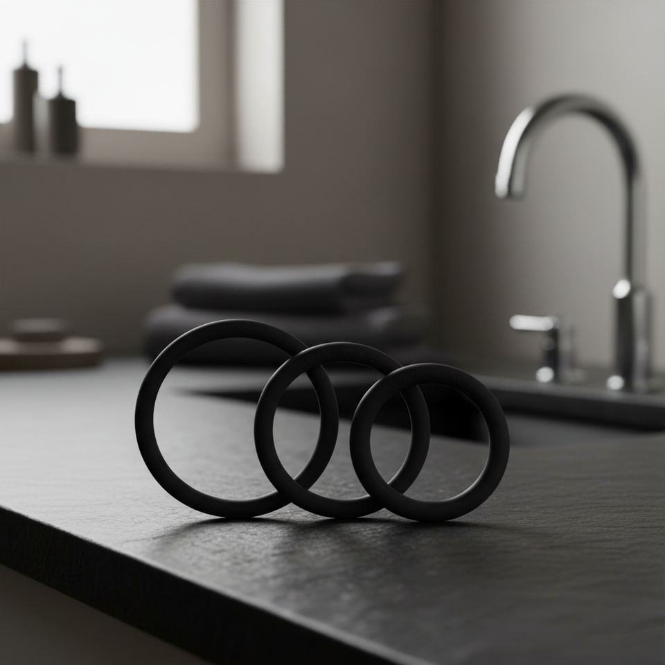 Set di anelli a C per uomo, anello per pene, per prolungare il tempo del rapporto, in gomma nera, 3 pezzi