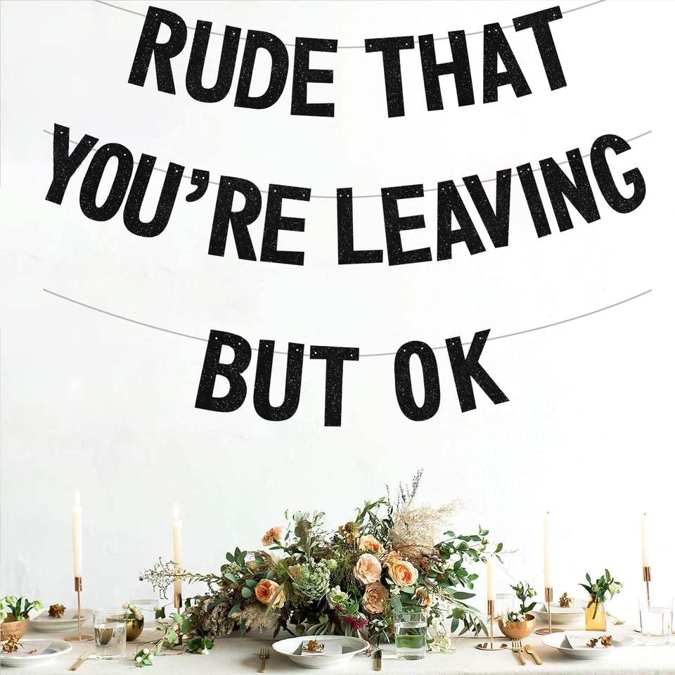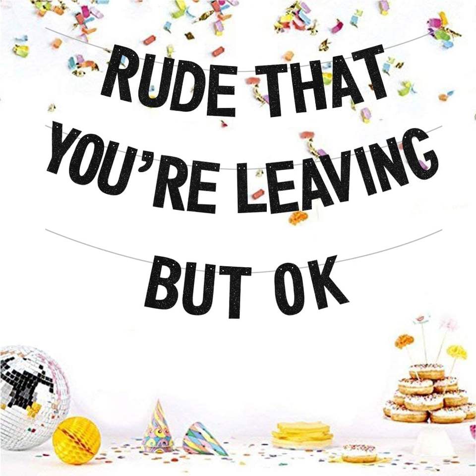 Striscione Nero 'Rude That You Are Leaving But Ok' per Addio Colleghi, Striscione Glitterato per Pensionamento, Addio, Forniture per Feste di Laurea