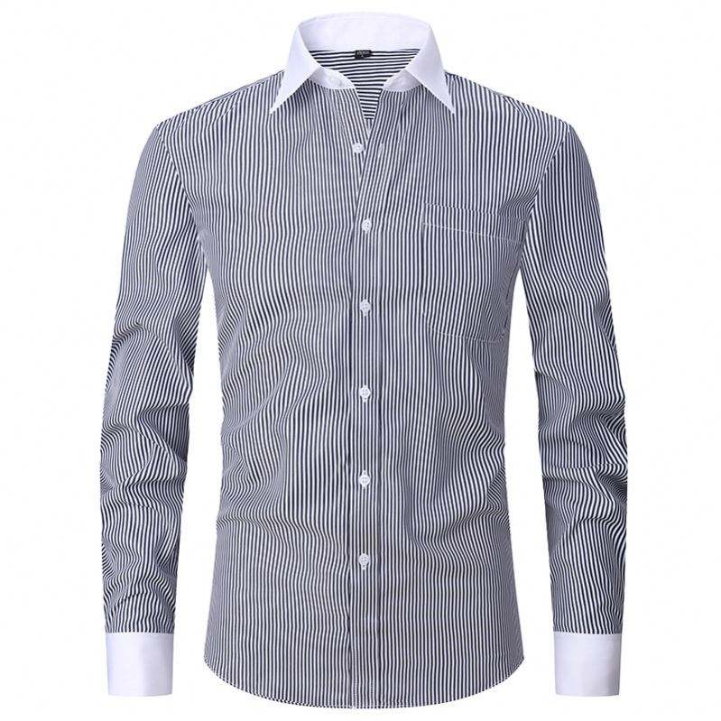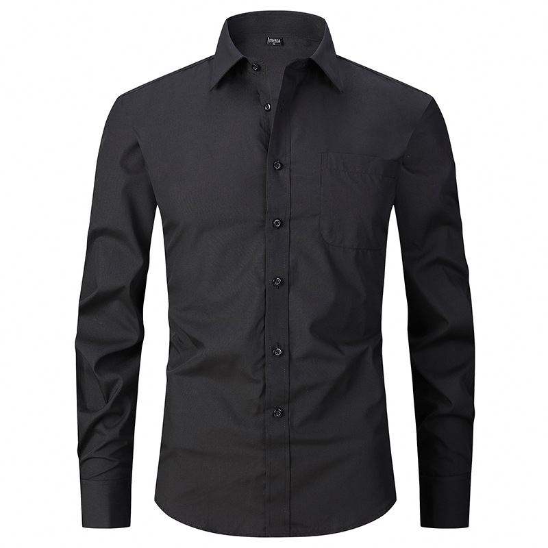 Black Shirt Men's Long-sleeved Business Button Dress Shirts French Cufflinks Solid Color Bridegroom Wedding Groomsman Dress