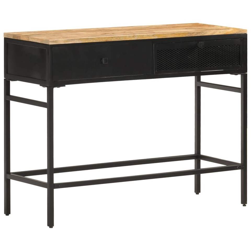 Credenza Nera con Impiallacciatura in Legno Naturale di Mango