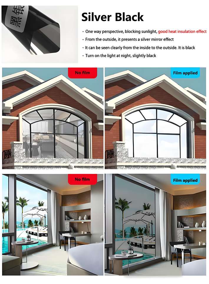 Argento nero 5% unidirezionale visibile ombra pellicola riflettente finestra di casa balcone isolamento termico pellicola di vetro per edifici commerciali