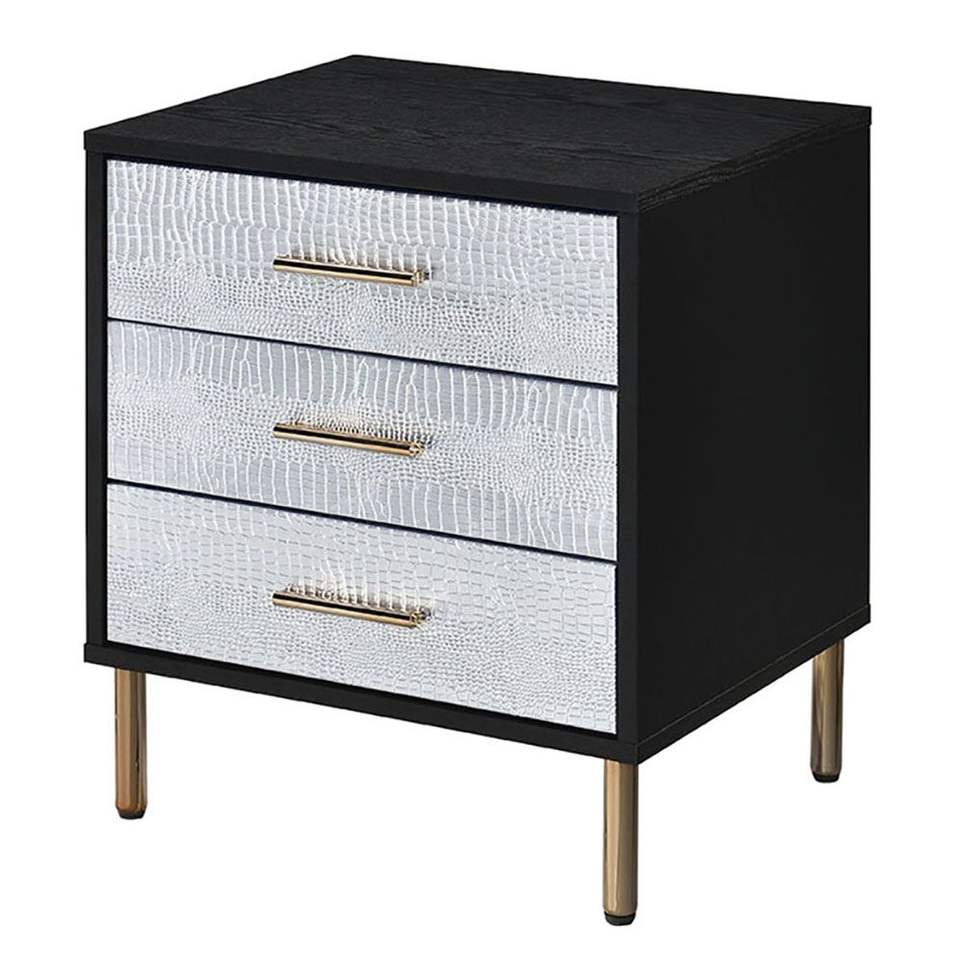 Comodino a 3 cassetti oro argento nero con elegante gamba in metallo