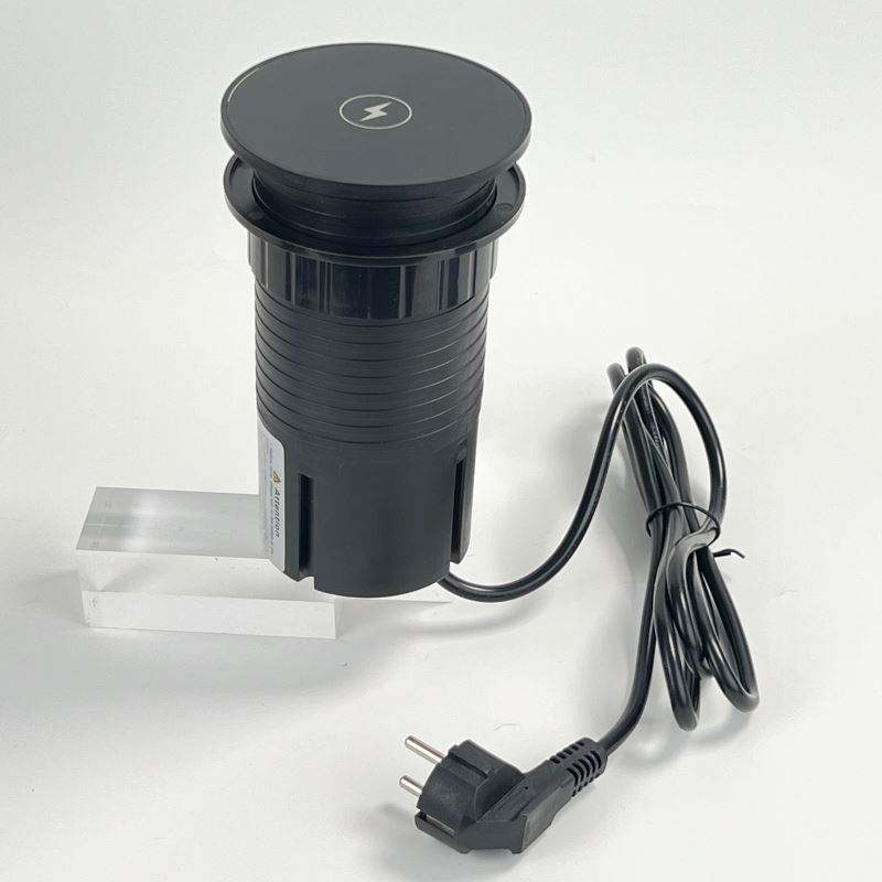 Presa Elettrica Idraulica a Scomparsa da Banco per Cucina, Piccola, Nera, Alimentazione EU/US, Presa USB con Caricabatterie Wireless Rapido da 15W per Ufficio e Casa