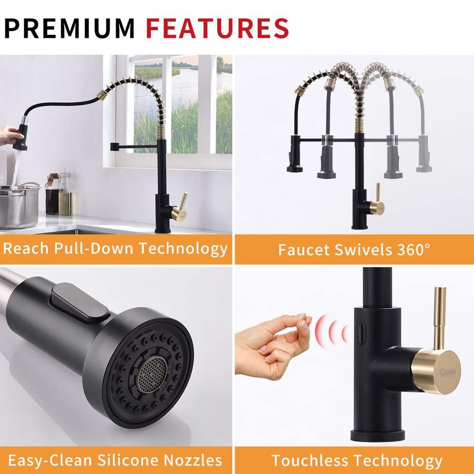 Rubinetto da Cucina Nero Intelligente Senza Contatto, Automatico e Smart
