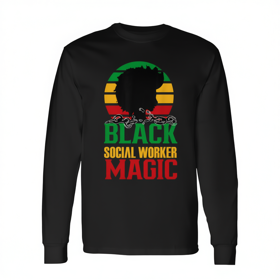 Maglietta nera a maniche lunghe da social worker Magic Juneteenth American Us