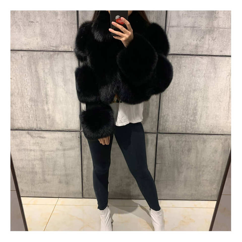 Black Soft Fox Fur Jacket Winter Warm Ladies Natural Real Fox Fur Coat for Women Outwear